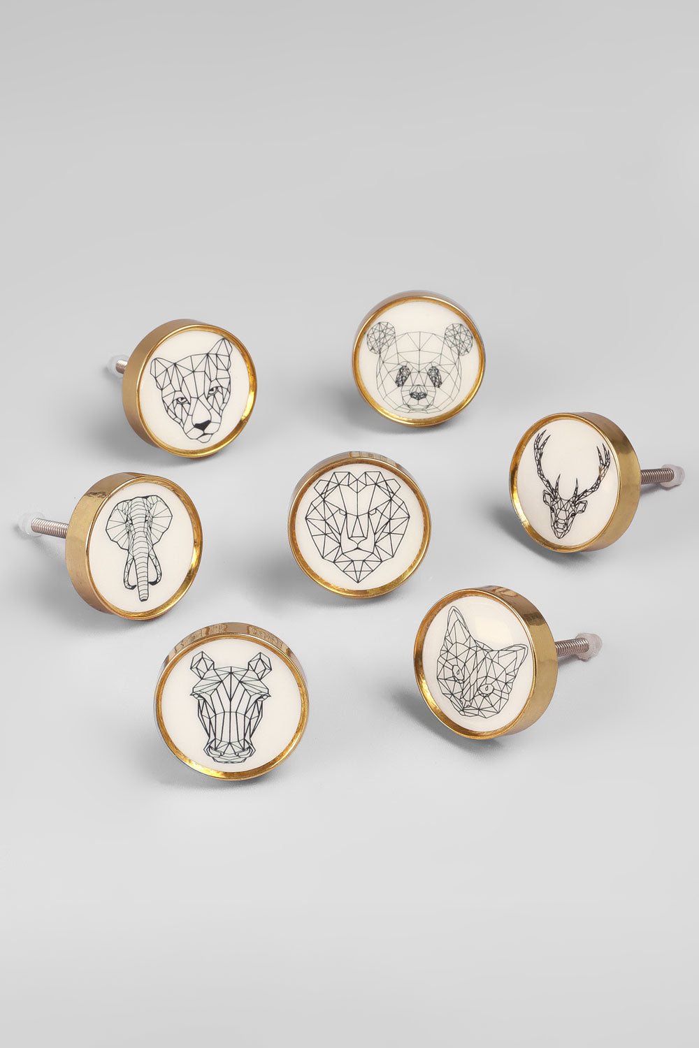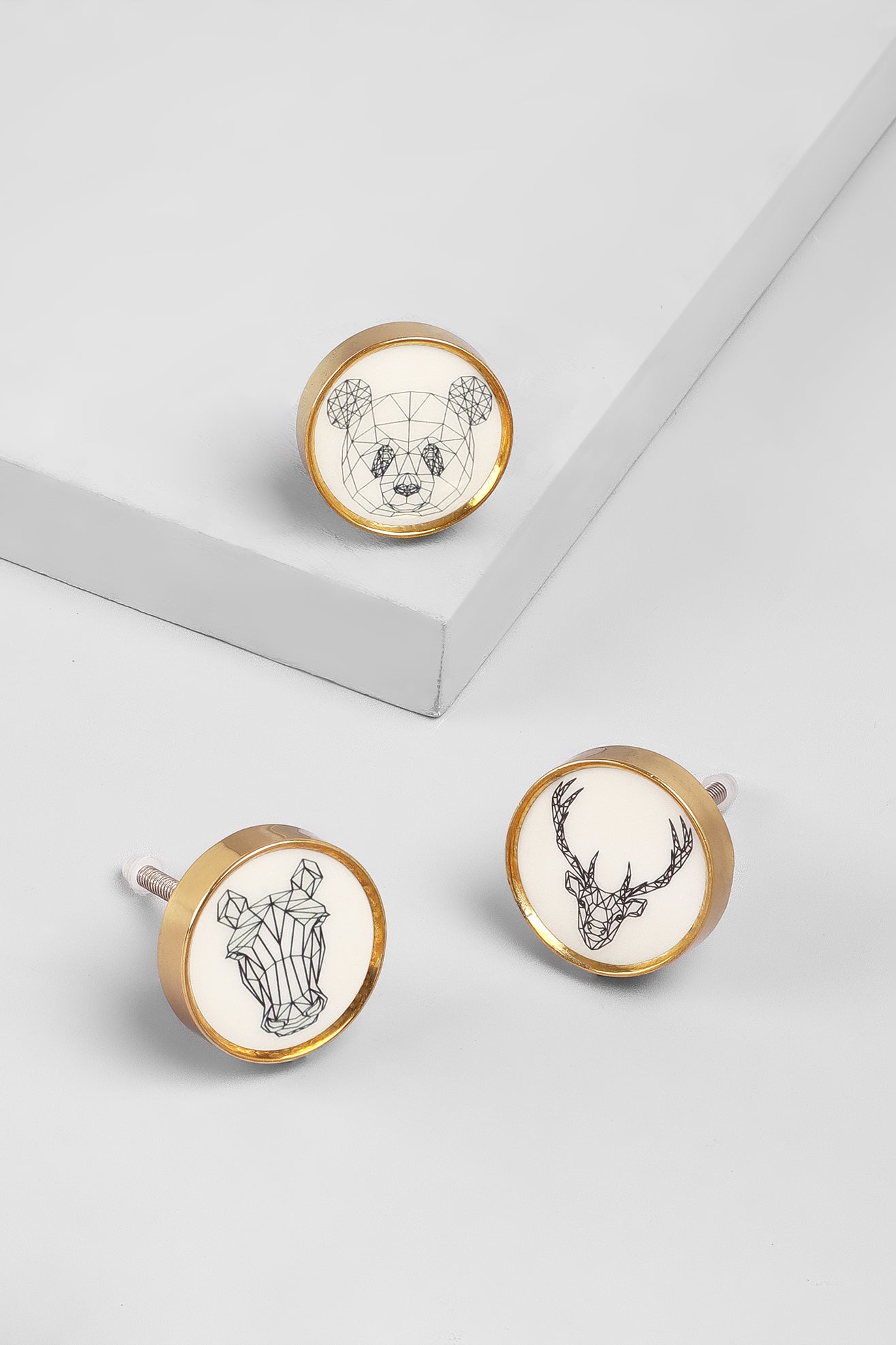 Wild Animal Brass Door Knob Decorative Cupboard & Drawer Handle transforming any furniture. A perfect fusion of elegance and artistic charm. Featuring striking geometric designs of wild animals, this handle is encased in a polished brass frame for a sophisticated finish. Crafted with premium-quality materials, these decorative handles are designed for durability and practicality, ensuring they withstand everyday use while adding a touch of uniqueness to your cupboards, drawers, or cabinets. The minimalist yet bold animal motifs offer a contemporary edge, making them ideal for modern interiors, while their timeless appeal ensures they fit seamlessly into classic décor styles as well. Whether refreshing a kitchen, updating a bedroom dresser, or adding flair to a hallway cabinet, the Wild Animal Brass Door Knobs make an eye-catching and functional addition to any room. Easy to install and versatile in application, these handles provide a stylish way to personalise all kinds of furniture.