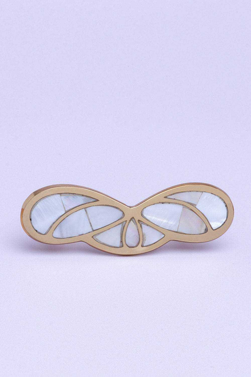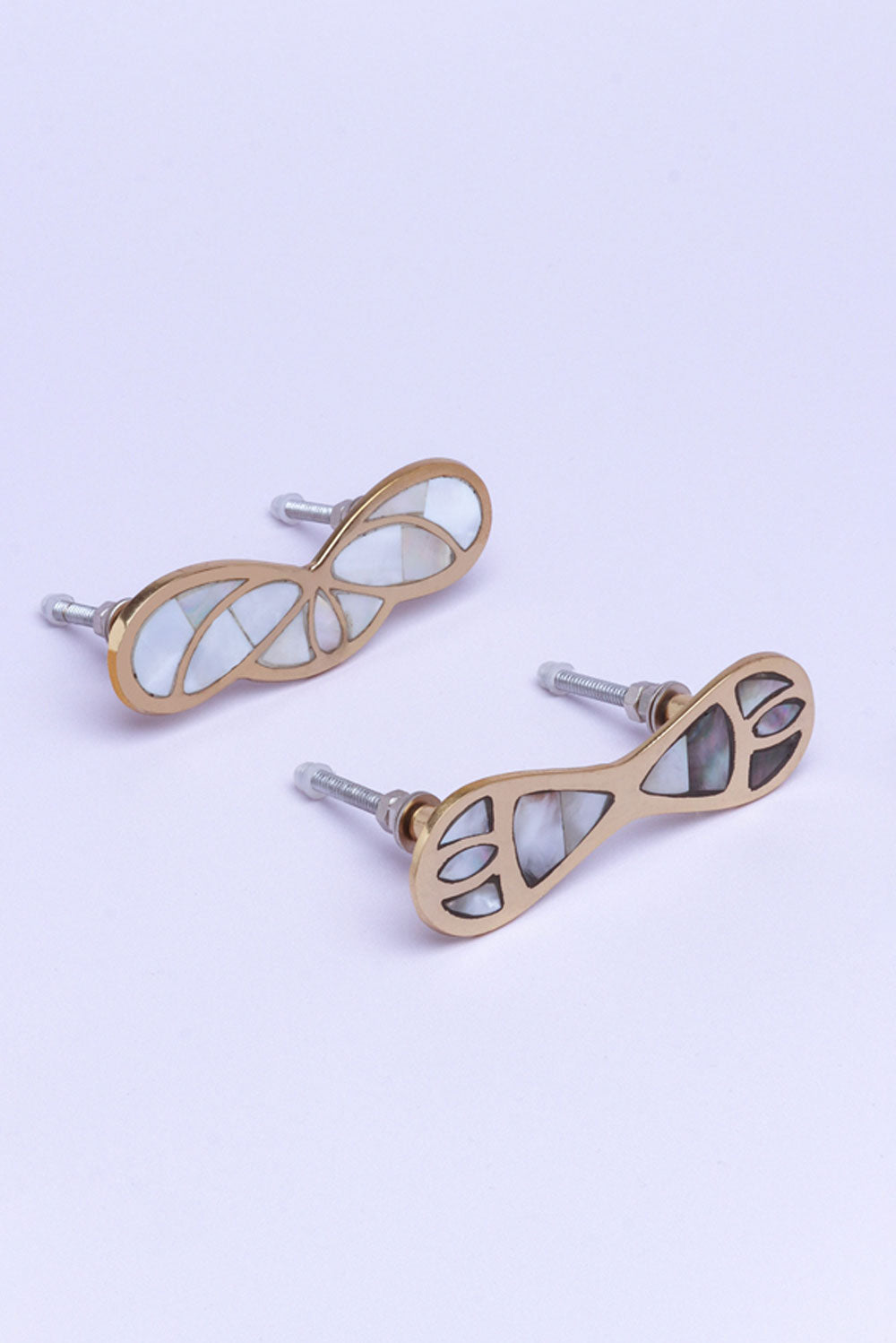 The Papillon Royale decorative cabinet pull handle is handcrafted from mother-of-pearl and brass, bringing a sense of ornament and softness to fitted interiors. Designed with a jewellery-like sensibility, it offers a decorative alternative to purely functional hardware. The surface is formed from carefully cut pieces of mother-of-pearl, shaped and assembled by skilled artisans before being set within a brass frame. The result is a composed, elegant handle where craftsmanship is expressed through precision and balance rather than excess. The materials are allowed to speak for themselves, creating a piece that sits comfortably within refined interiors. The design takes its cues from flowing, butterfly-like forms, lending a sense of lightness and movement to cabinetry and furniture. It is decorative, adding character through shape and material. Papillon Royale is suited to cabinets, drawers, wardrobes, and furniture where detail matters. Used individually or repeated throughout a space, it brings a subtle decorative rhythm. Papillon Royale can also be used as a matching pair on double doors, fitted individually to the left and right doors. This makes it particularly suited to double wardrobes, where the paired handles create a balanced, decorative focal point across the opening while maintaining a composed, elegant look. This handle is intended for interiors that favour thoughtful detail and craftsmanship — pieces shaped by hand, where design and material are brought together with care and intention.