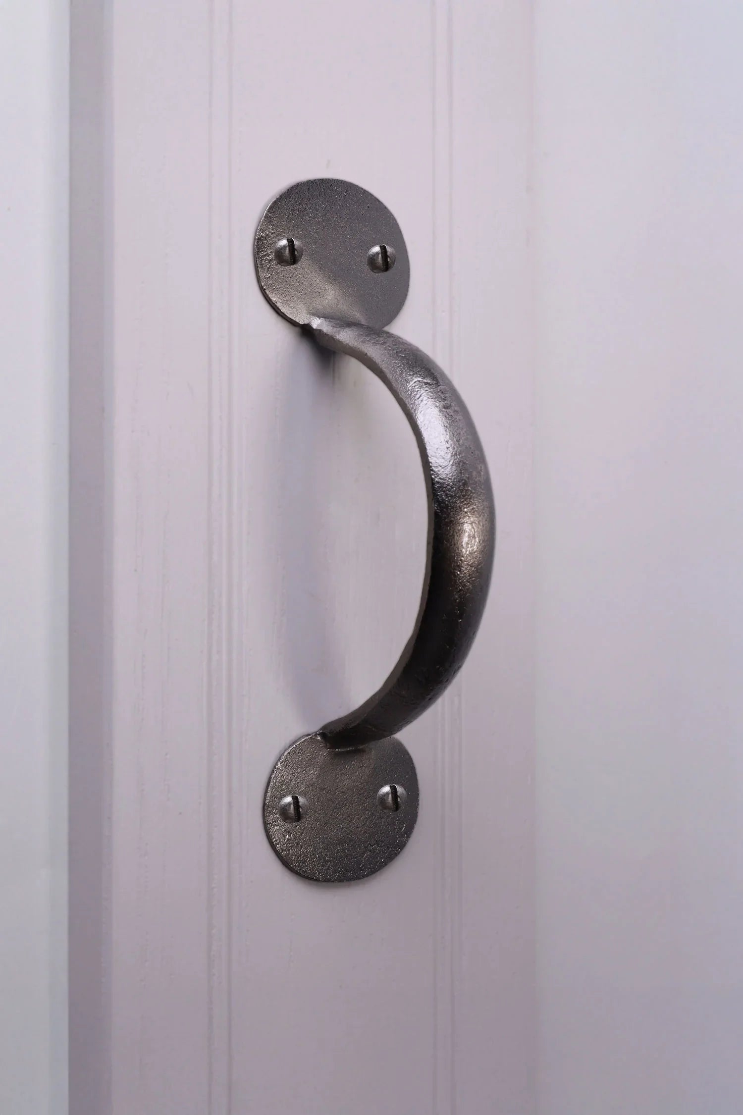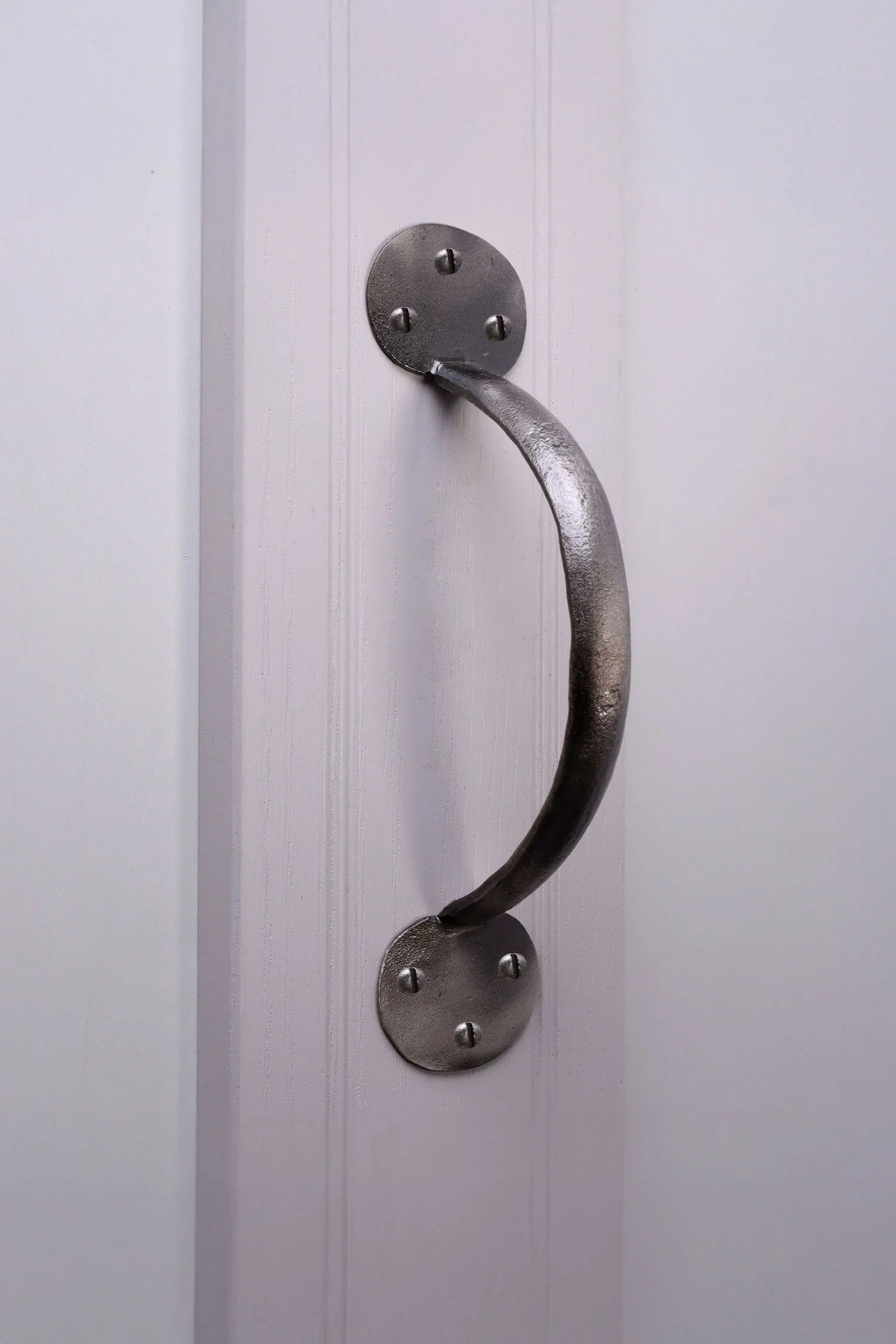 The Pewter finish takes its inspiration from traditional metalworking, where pieces were shaped by hand and finished with a muted, silvery tone that softened with use. To create this look today, the ironwork is first forged and shaped, then carefully brushed and treated to reveal a gentle silver-grey surface. The process leaves small variations and shading across the metal, which gives the finish its natural, slightly weathered appearance. Unlike bright plated finishes, Pewter is designed to look settled from the start — not shiny, but quietly metallic, as though it has already been part of the home for years. The final tone is achieved by layering and working the surface until it reaches a balanced, soft sheen that feels grounded and familiar. This makes it particularly suited to wooden doors and neutral interiors, where materials with more subtle character tend to sit comfortably. Pewter is also appreciated for being straightforward to live with; the finish doesn’t demand special care and simply needs an occasional wipe to keep dust away. Because the tone is built into the surface rather than applied as a heavy coating.