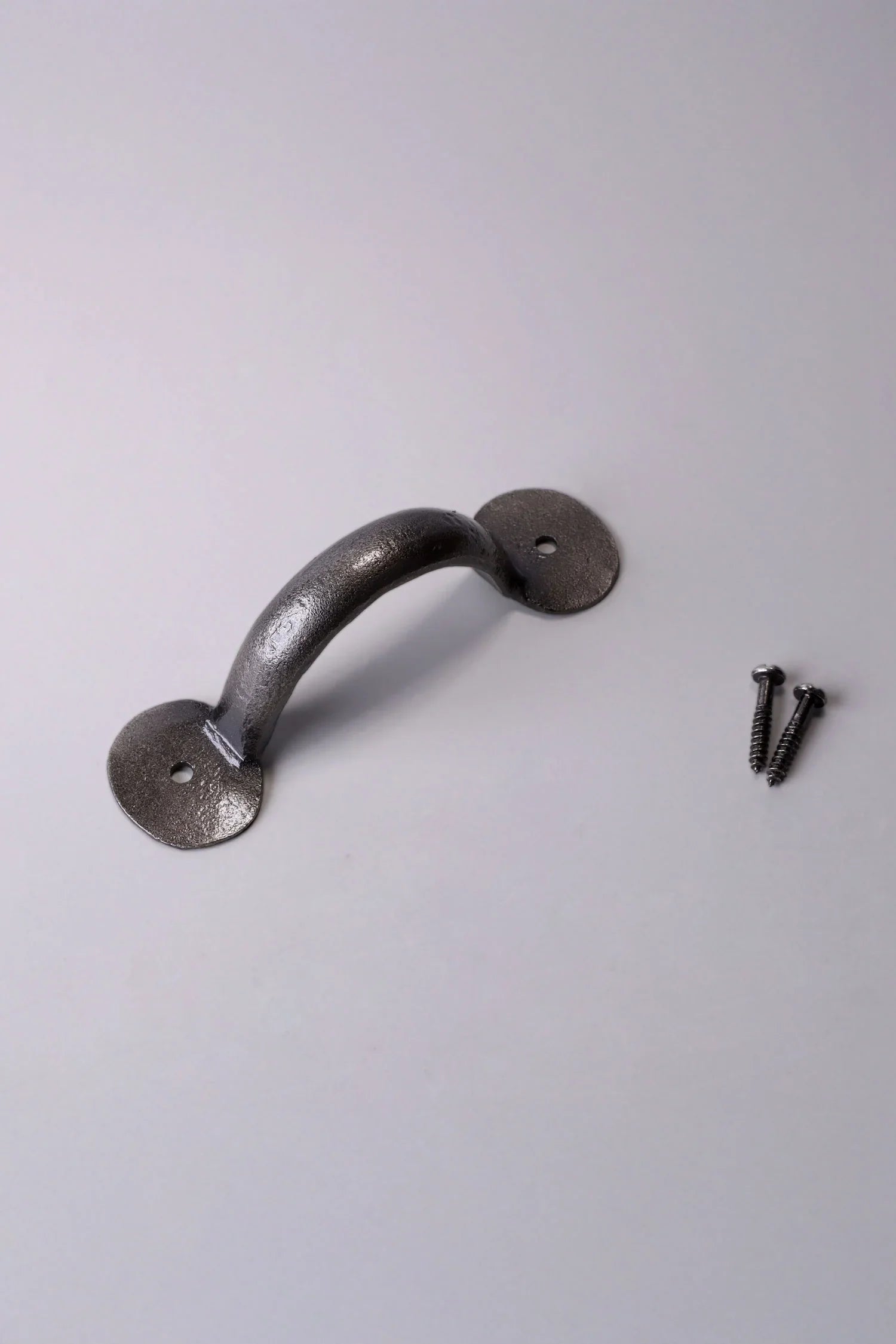 This hand-forged coinbase pull handle is manufactured from solid pewter using traditional metalworking techniques. The handle is shaped by hand to create a robust and practical fitting suitable for a wide range of interior and exterior applications. The handle incorporates round coinbase fixing plates at each end. These bases are formed to create a raised edge around the fixing points, providing strength and a distinctive traditional appearance. The coinbase detail is a characteristic feature of classic door furniture and is commonly used across period and heritage joinery. Pewter is naturally corrosion-resistant and well suited to both indoor and outdoor environments. The finish offers a soft, muted metallic tone that works comfortably in traditional, rustic and heritage-style settings, while remaining understated enough for more neutral interiors. The pull handle features a simple curved profile designed to provide a comfortable and practical grip. The 4 inch size is typically used on smaller drawers and compact cabinetry. The 6 inch size is suitable for standard drawers, cupboard doors and smaller internal room doors. The 8 inch size is recommended for entry doors, standard room doors and barn doors, as well as larger drawers and furniture doors where a longer handle provides improved hand clearance. Each handle is supplied with matching fixing screws and is suitable for use on drawers, cupboard doors, furniture doors and doors where a traditional pewter pull handle is required.