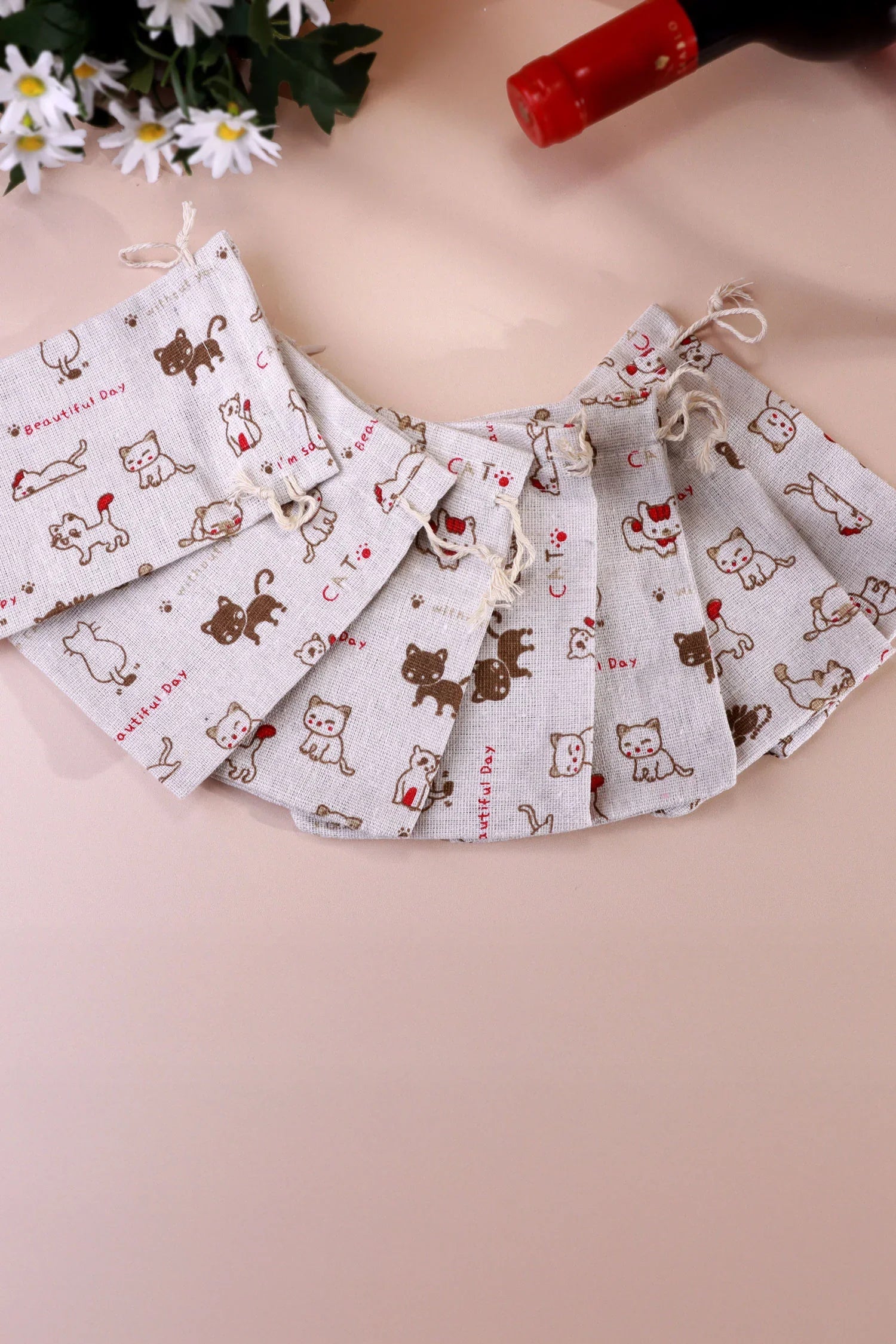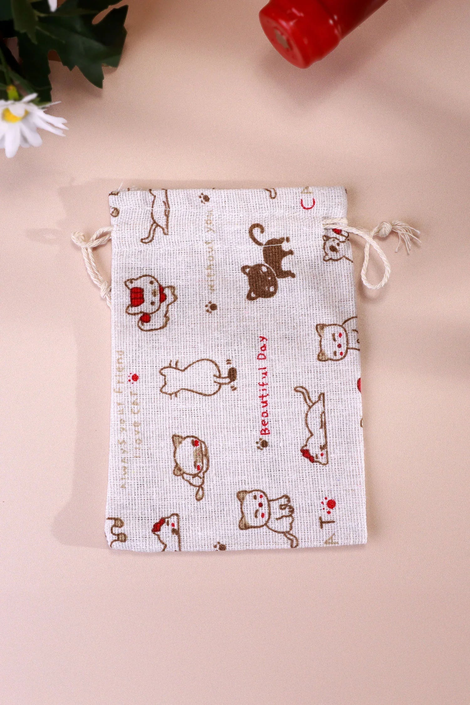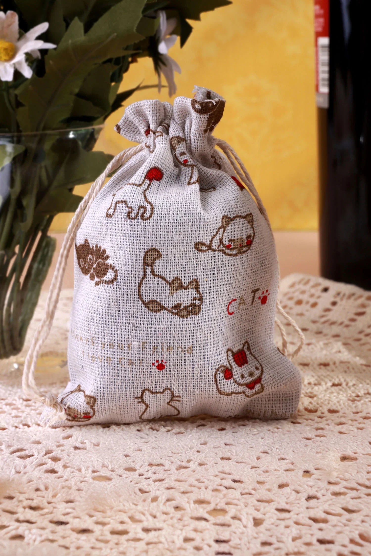 Gift Bags Set of 2 or 4 Whisker Mischief Linen Pouches for Cat Lovers