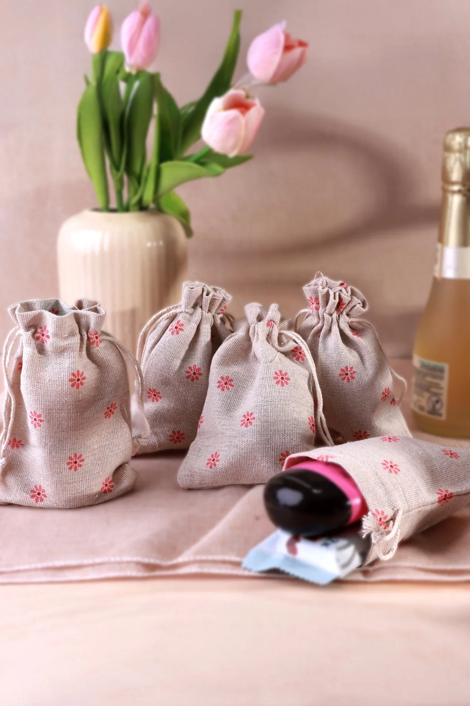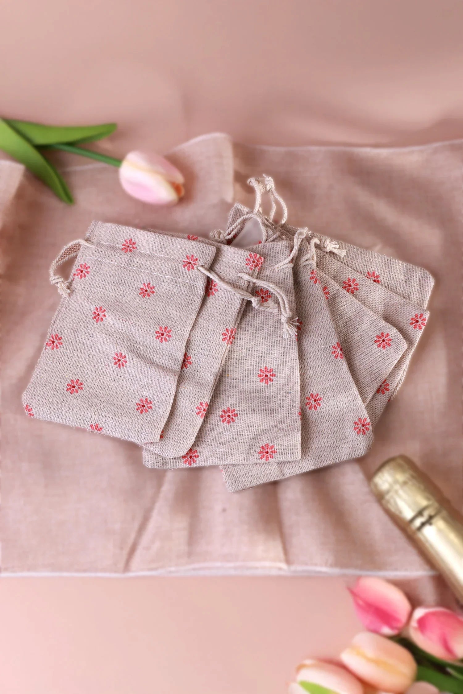Set of 2 or 5 Linen Gift Bags Blossom Reusable Favour Pouches for Small Gifts & Treats