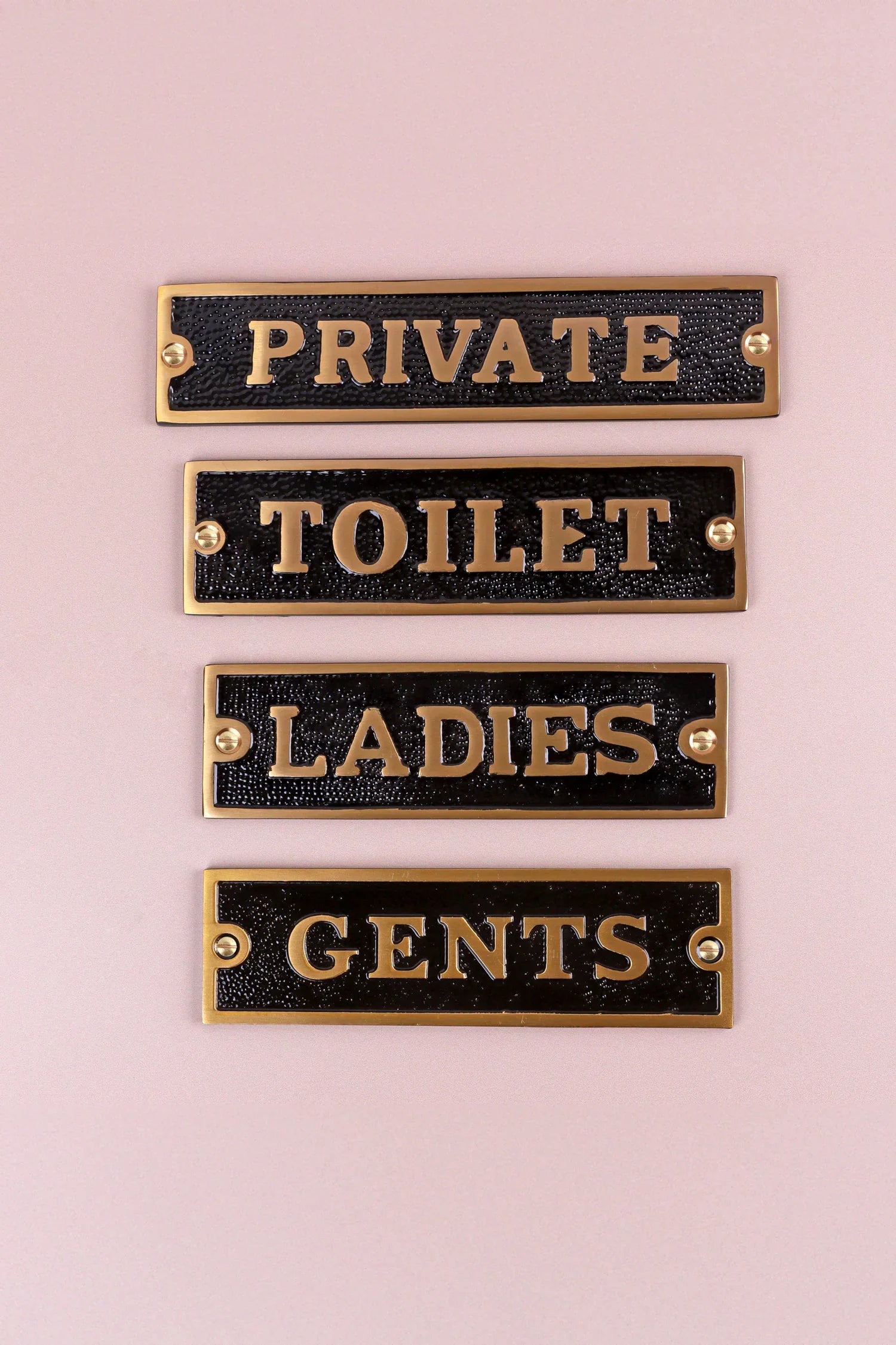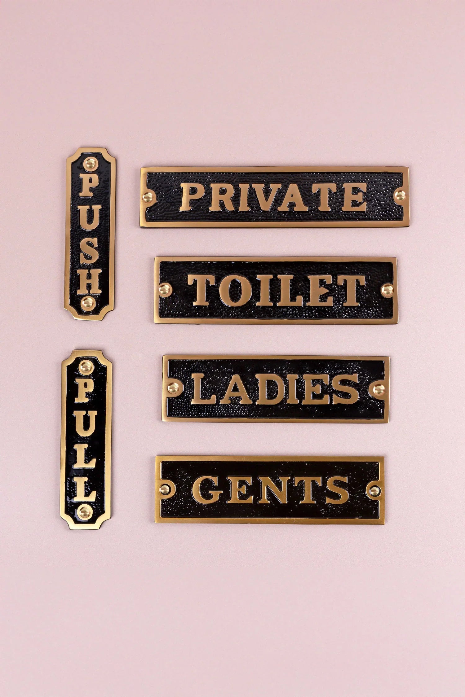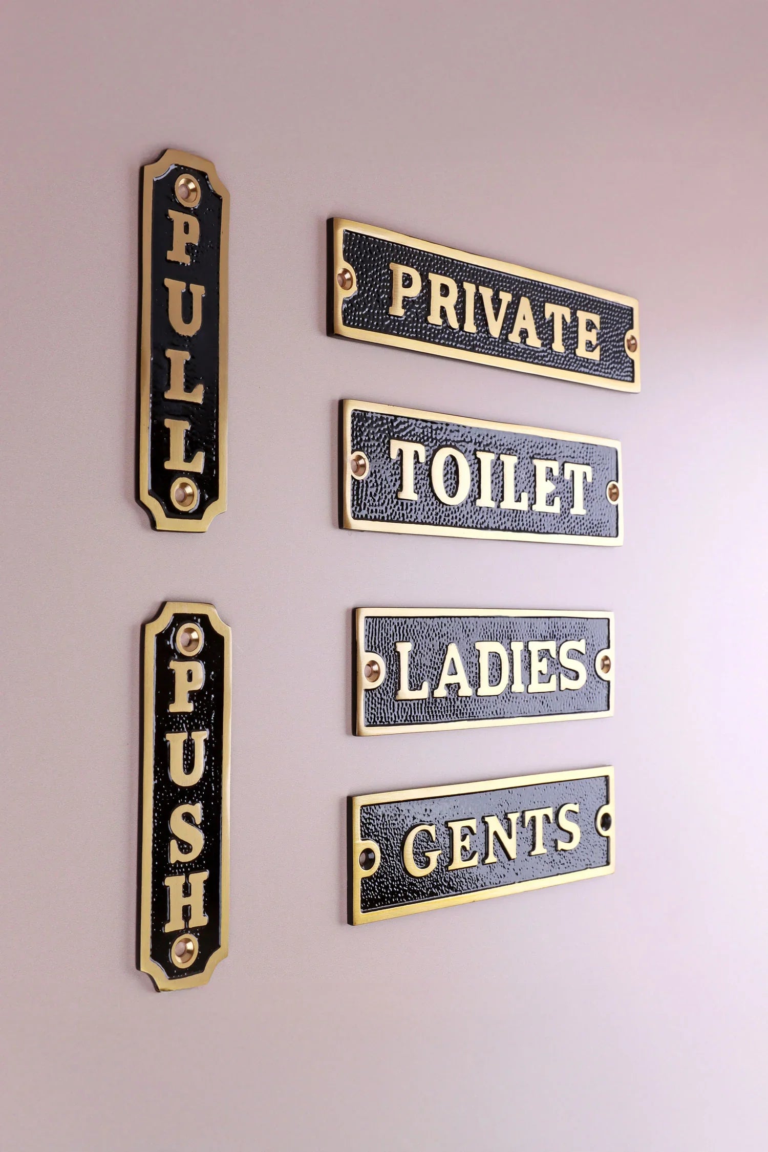 Premium Classic Pub Lacquered Black & Brass Door Sign Raised Letter Push, Pull, Private, Toilet, Ladies, or Gents Plaque for Indoor or Outdoor Display