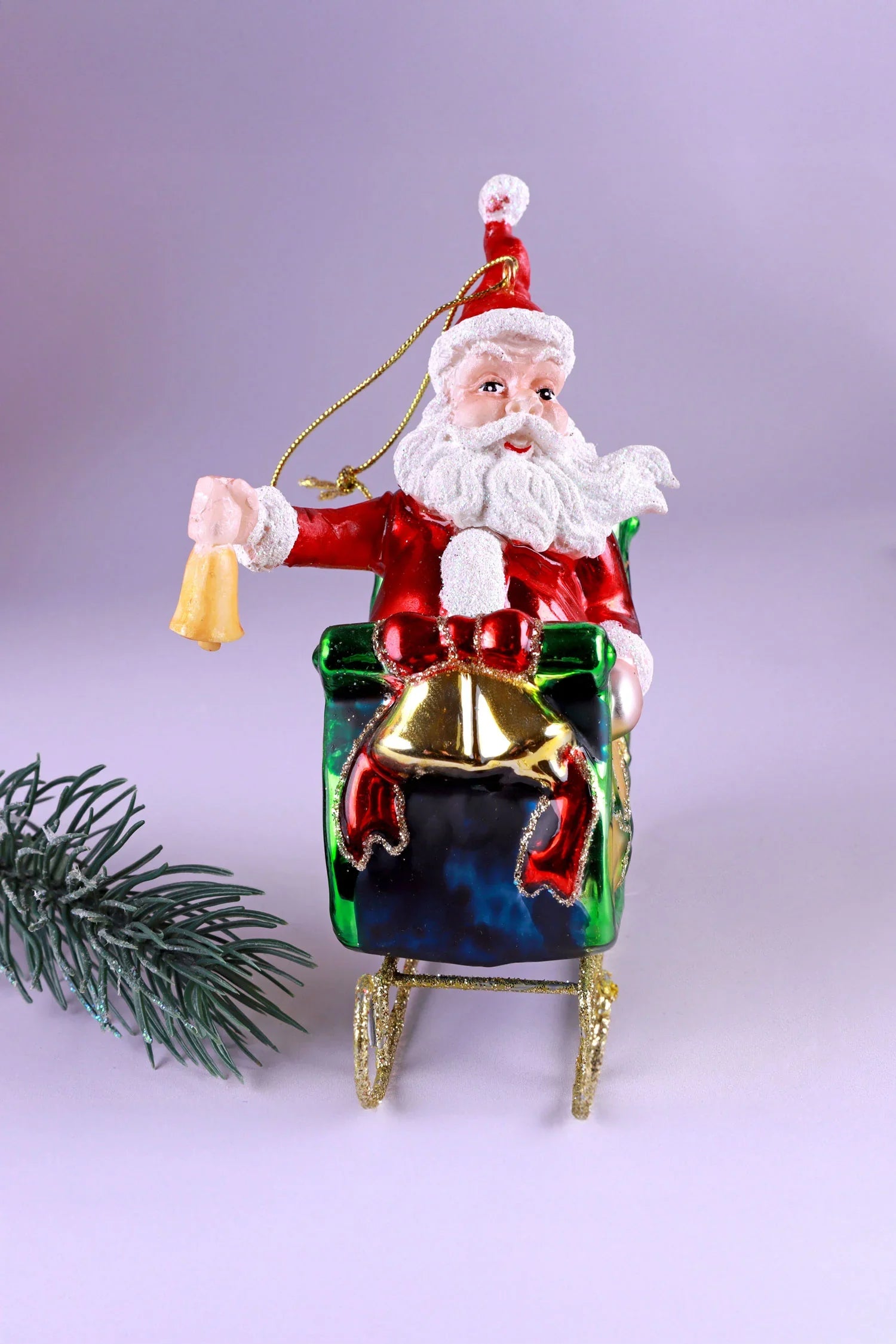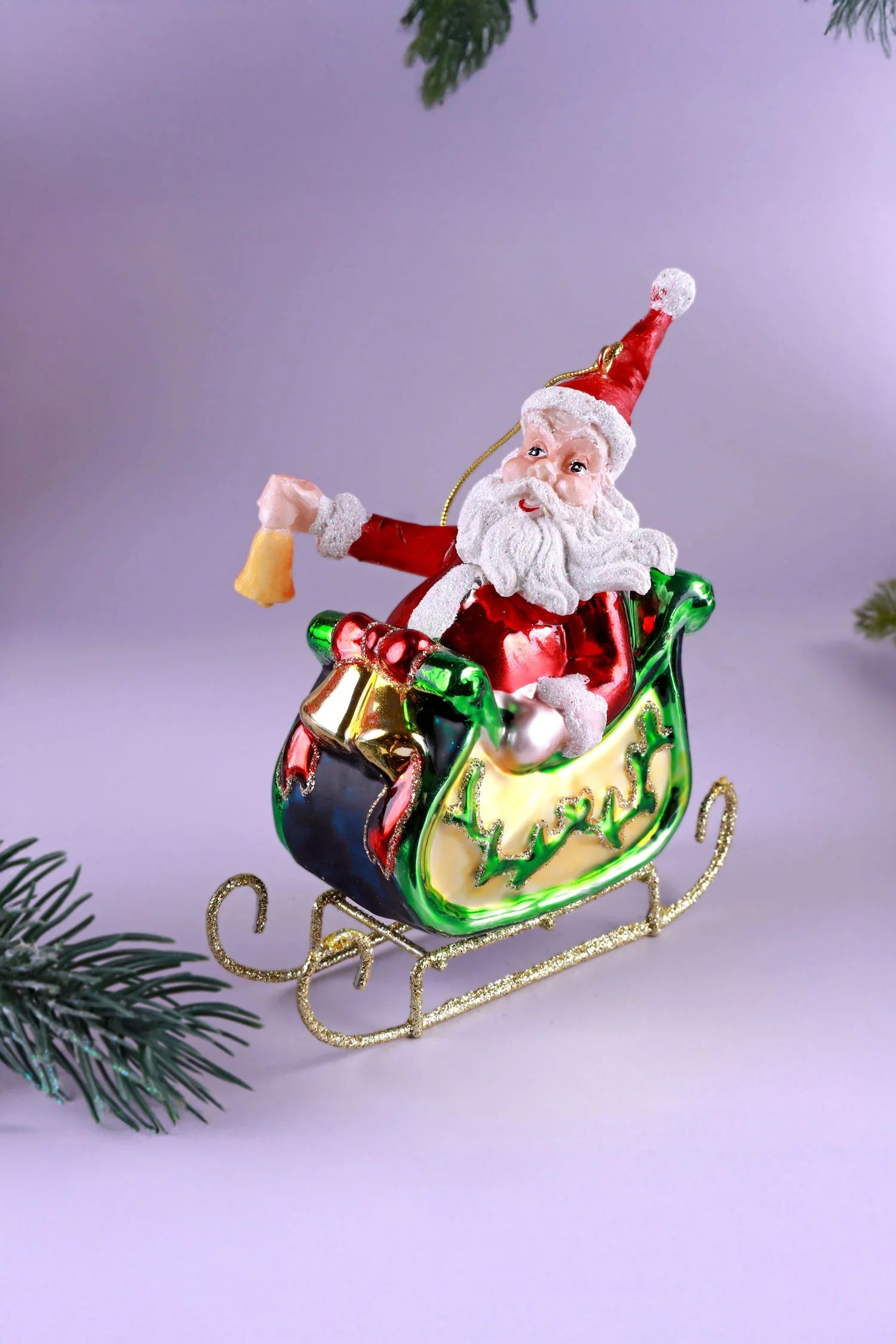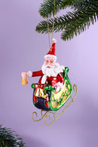 On the Way Santa in Sleigh Large Handcrafted Glass Festive Christmas Tree Ornament