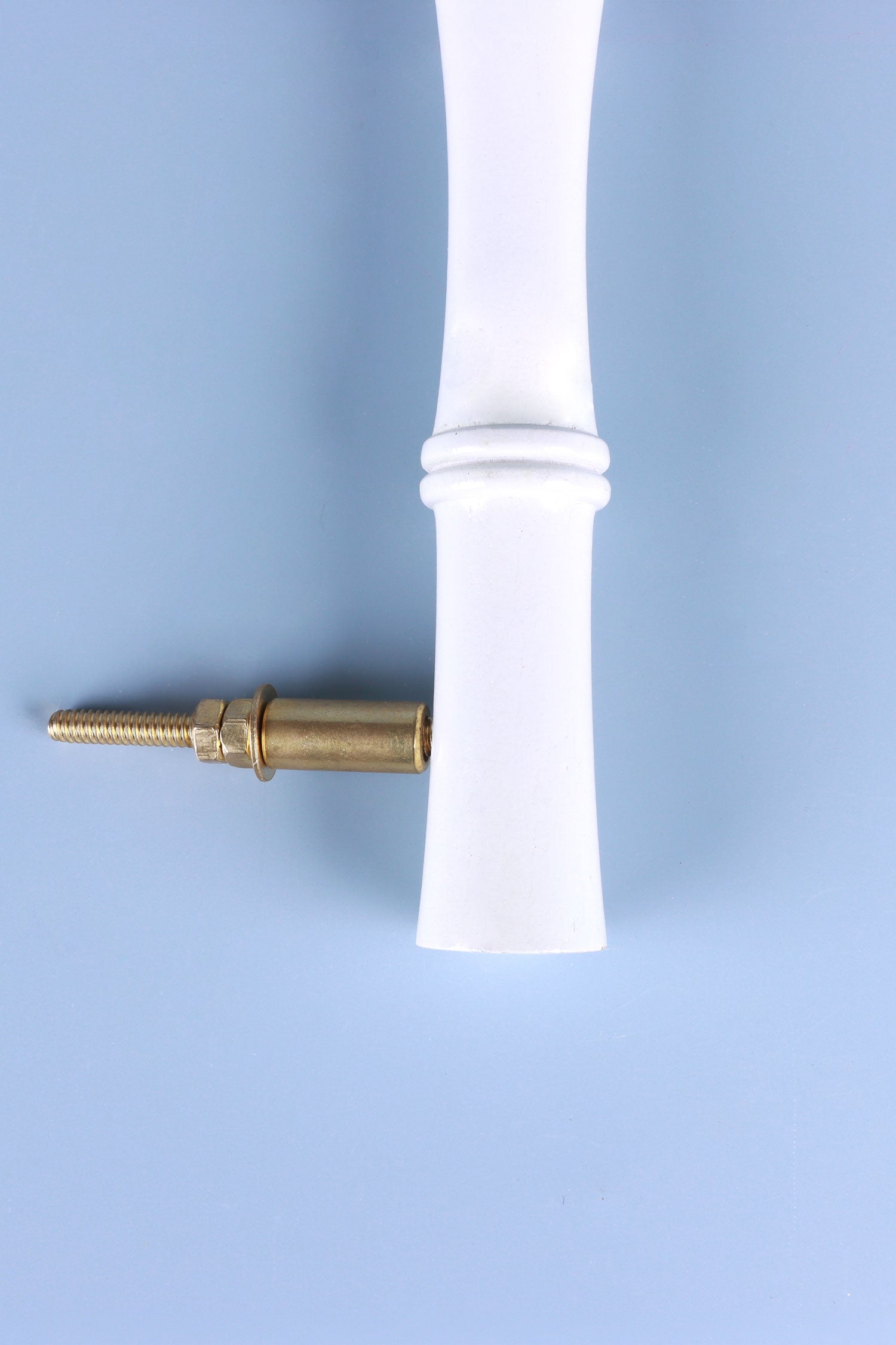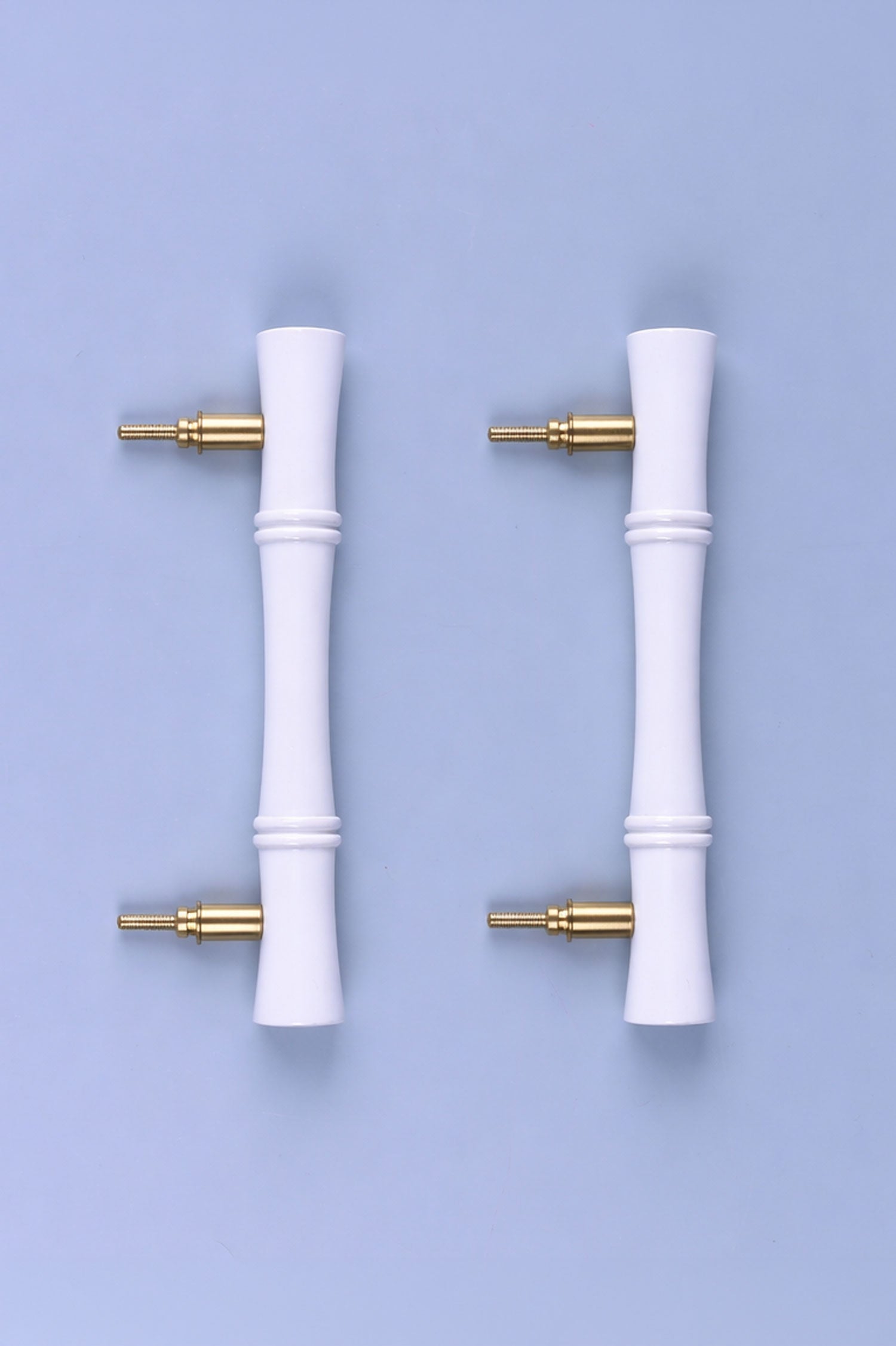 Crafted from solid bamboo wood, the Kyoto door handle set brings a quiet sense of balance and natural form into the home. The shape follows the gentle rhythm of bamboo stems, softly contoured and finished in a smooth white coating that highlights the shape and craftsmanship of the bamboo. Each handle is made with care, shaped from real bamboo and paired with a solid brass base. The contrast between the soft white wood and the warm brass creates a considered, architectural look that sits comfortably across both modern and more classic interiors. Designed for interior and entry doors, the handles offer a comfortable grip and a reassuring weight in hand. The proportions feel natural, while the detailing remains subtle. This set of two is ideal for paired doors or for creating a consistent look throughout a room. Whether used in a bedroom, hallway, or living space, the Kyoto handles introduce a calm, refined presence that feels both functional and decorative.