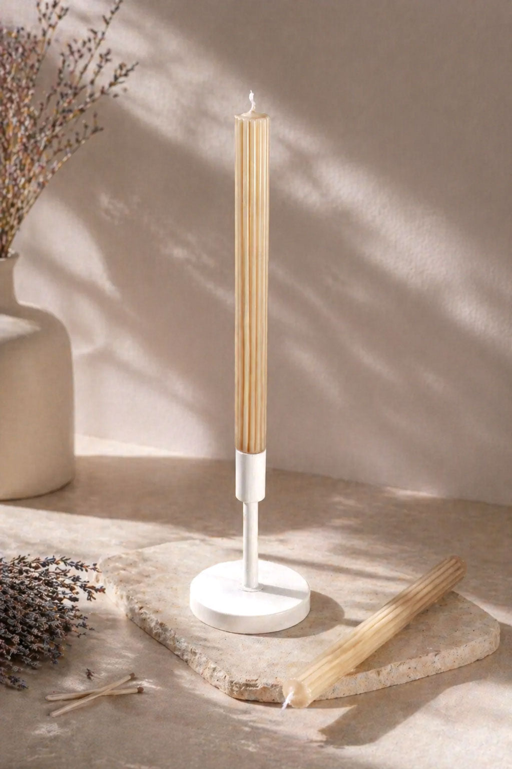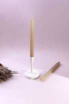 Sculptural and commanding, the Velluto Noce Verde candle set is designed for spaces that dare to impress. These hand-pounded taper candles rise tall at an extraordinary height, casting a statuesque presence that echoes the grandeur of Italian Renaissance columns—particularly those found in the Palazzo Vecchio’s famed courtyard. The ribbed surface and velvet-matte finish bring an artisanal texture, lending beauty with a tactile quality that feels both historic and modern. The unique green-brown tone, reminiscent of aged walnut wood kissed by olive tones, brings a grounded, organic character to your table or interior styling. Whether displayed during a curated dinner party, a romantic wedding reception, or an editorial-style home setup, these candles create an atmosphere of quiet opulence. Though tall in form, they’re thoughtfully sized to fit standard dinner candle holders, making them effortlessly usable while remaining statement-worthy. Their elongated silhouette becomes a visual anchor—elegant yet earthy, subtle yet sculptural. Each pair is hand-finished with care, its artisanal construction ensuring slight natural variations that enhance its look. From exclusive tablescapes to boutique event styling, Velluto Noce Verde invites admiration.