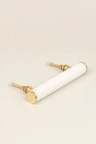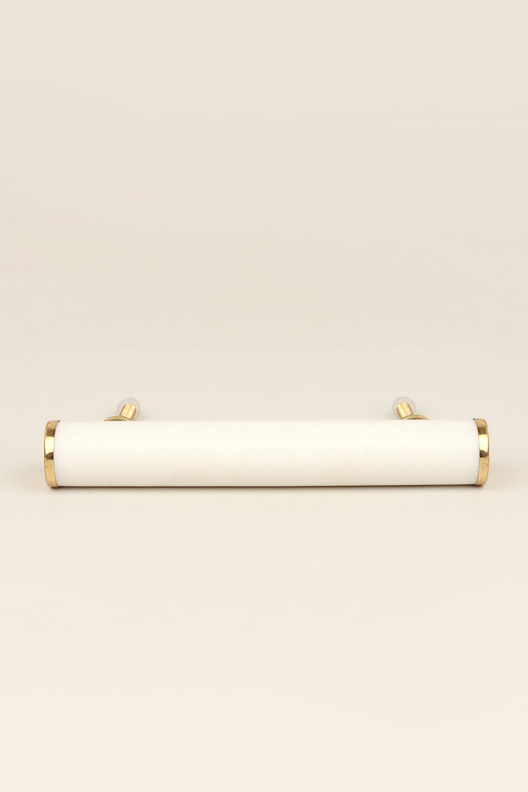 The Bianca Estella Solid Marble & Brass Architectural Cabinet Pull Handle is defined by balance, weight, and precision. Handcrafted from solid natural marble and finished with carefully proportioned brass detailing, it brings a sense of permanence and restraint to cabinetry and furniture. The cylindrical marble form feels cool and substantial in the hand, with a smooth, considered surface that reflects the quality of the material. The brass accents sit close to the marble, understated and intentional, adding warmth and contrast while allowing the stone to remain the focus. This pull handle is well-suited to drawers, cupboards, wardrobes, and bespoke cabinetry, particularly where materials and proportions matter. It works beautifully on real wood, painted finishes, and joinery where a clean architectural line is desired. Whether used individually or repeated across a space, it brings a composed, considered finish. Bianca Estella is defined by craftsmanship and material excellence. Handcrafted from solid marble and finished with precisely balanced brass detailing, it is a handle created for interiors where quality is recognised immediately. Every element is deliberate, from its weight and proportion to the way it sits against cabinetry, making it a considered choice for spaces designed with intention.