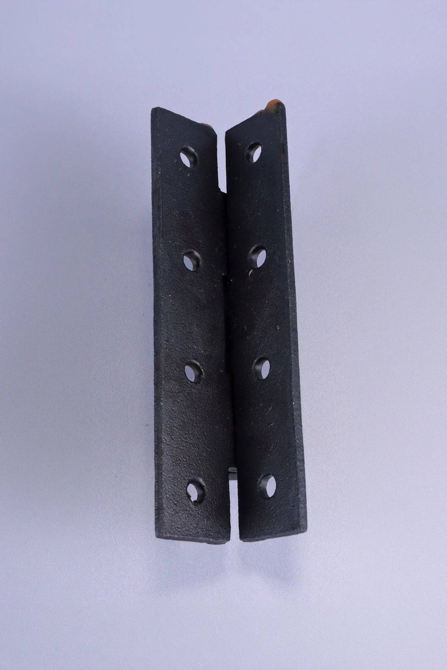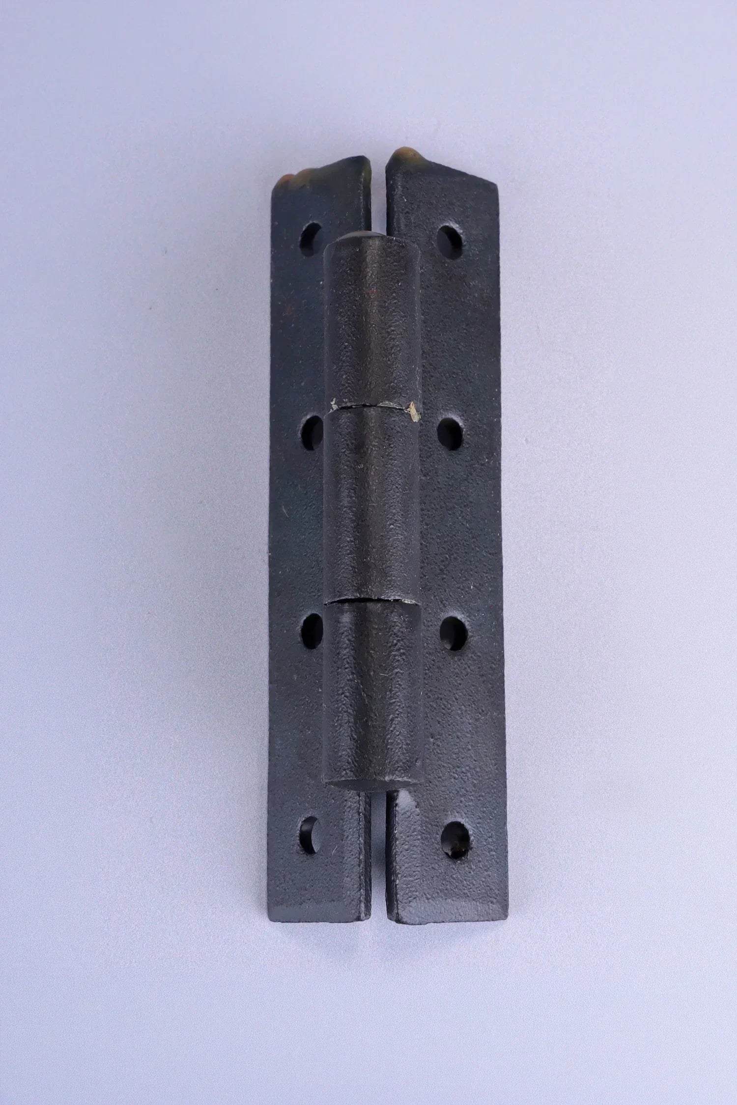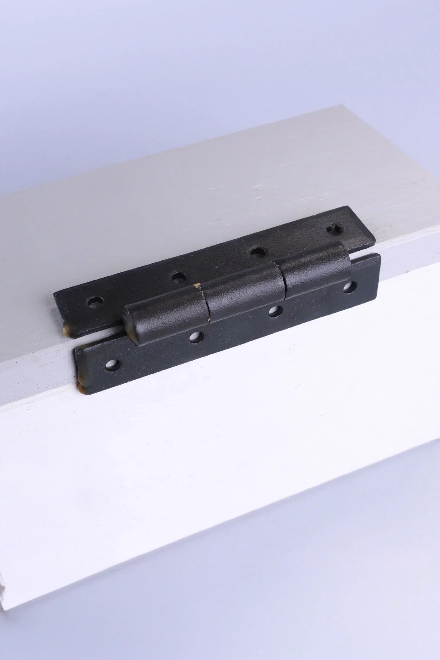 To maintain the beeswax finish, simply wipe the hinge occasionally with a dry or lightly damp cloth. Avoid harsh chemical cleaners or abrasive products. If required, a small amount of clear furniture wax or natural beeswax can be applied and gently buffed to refresh the protective layer and preserve the natural tone of the iron.