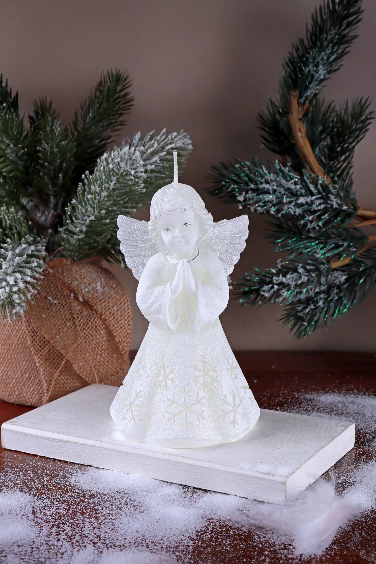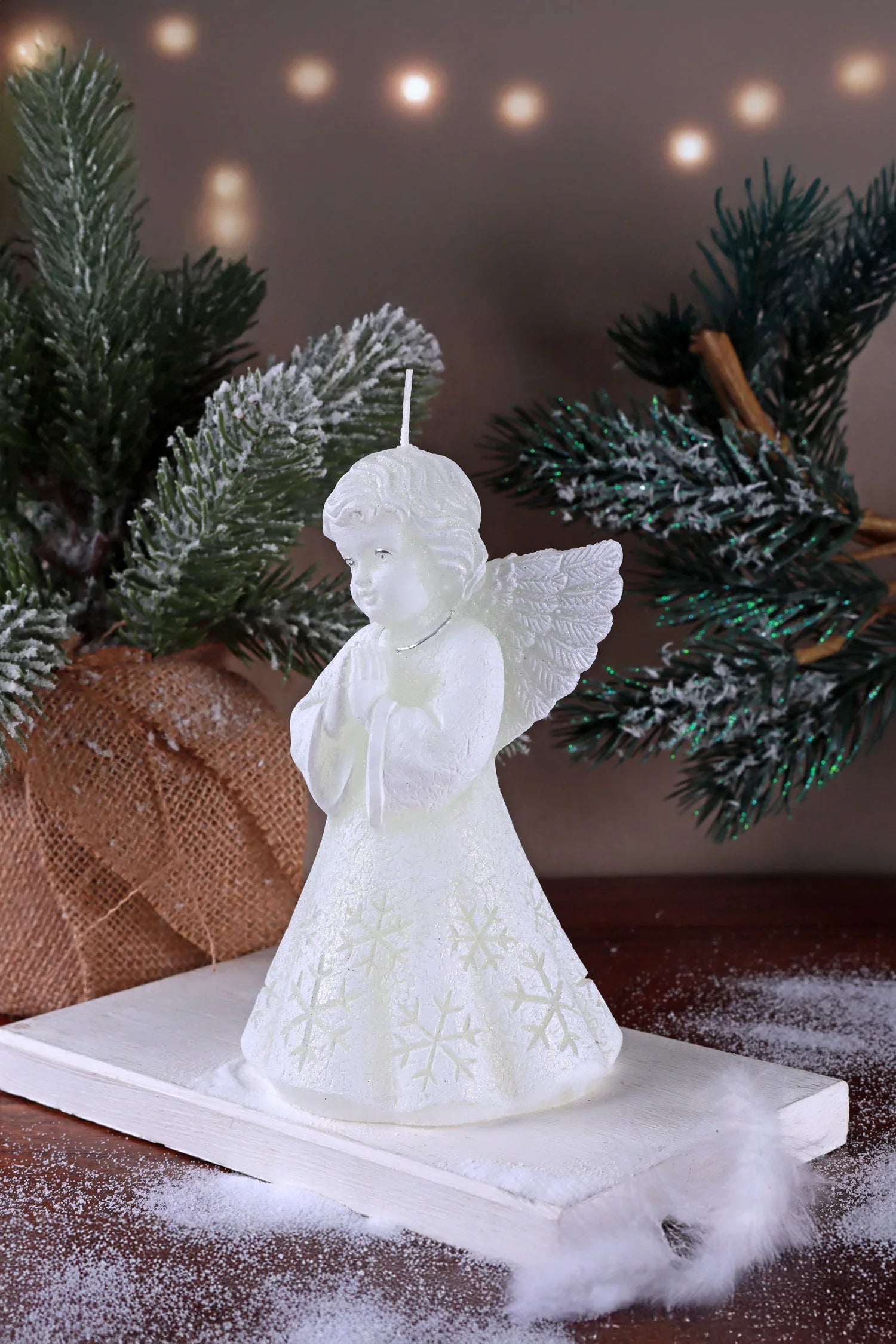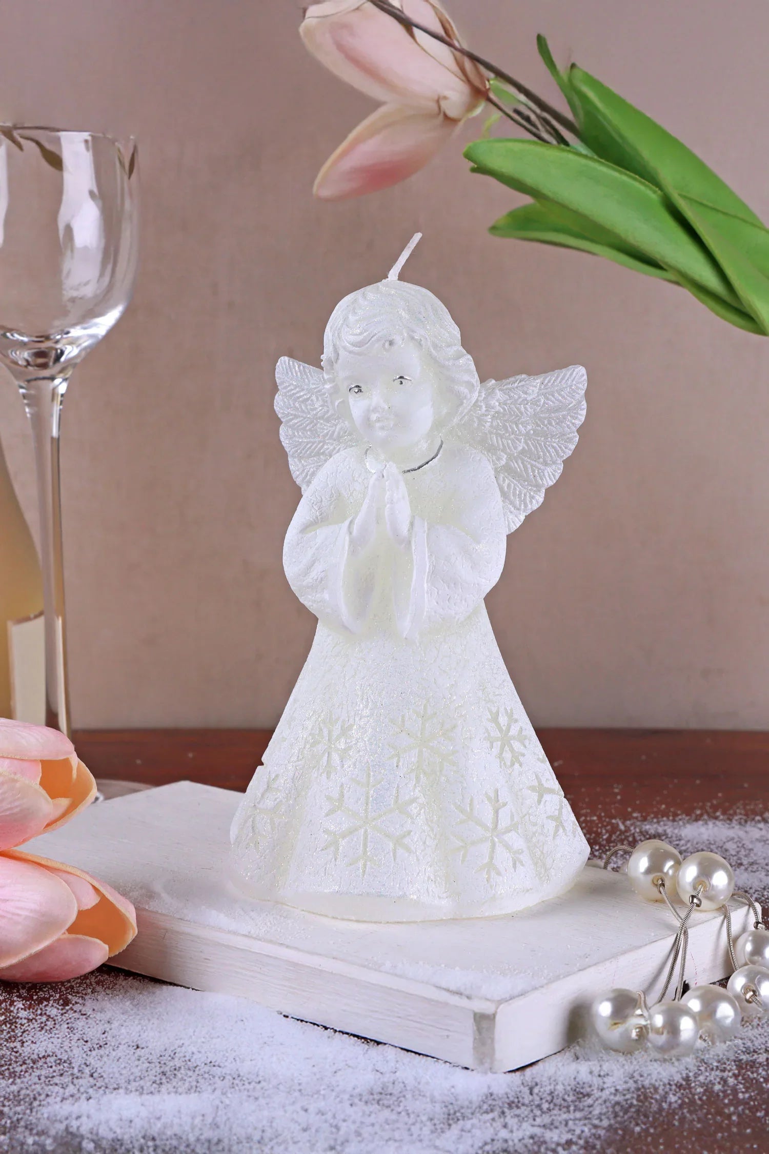 White Angel Art Candle Hand-Finished with Snowflake Dress Decorative Wax Figure Symbol of Blessings & Good Wishes
