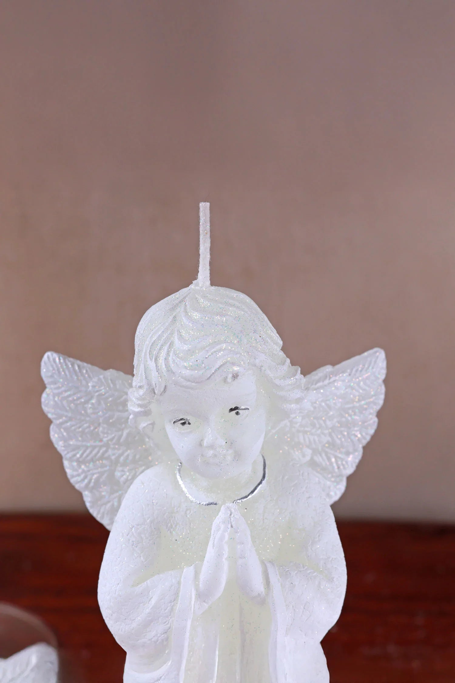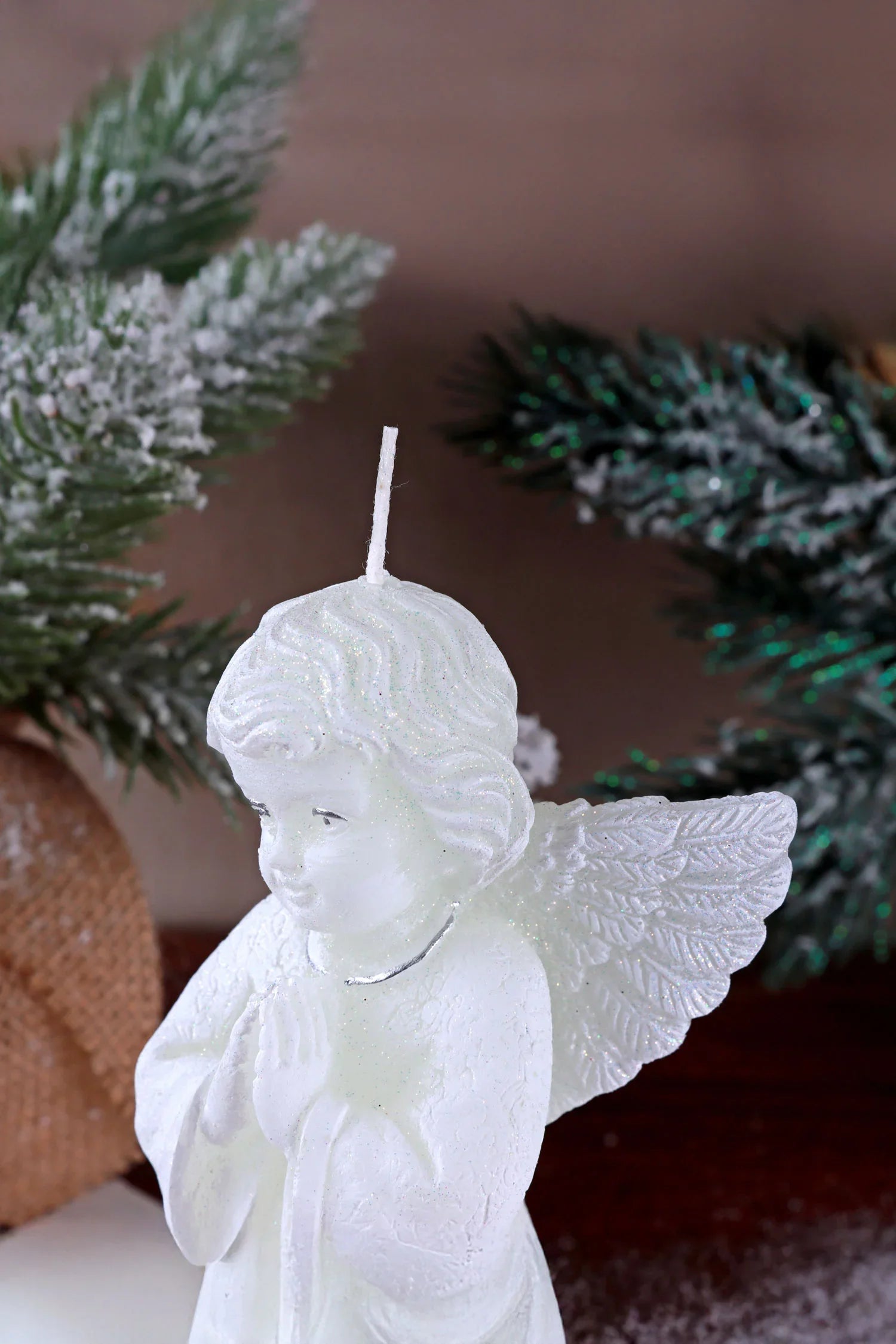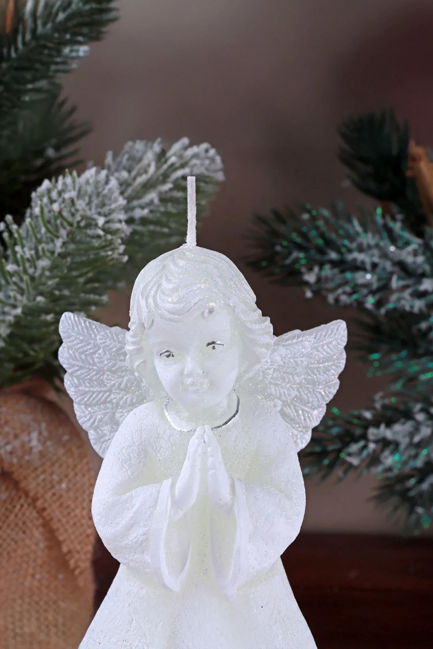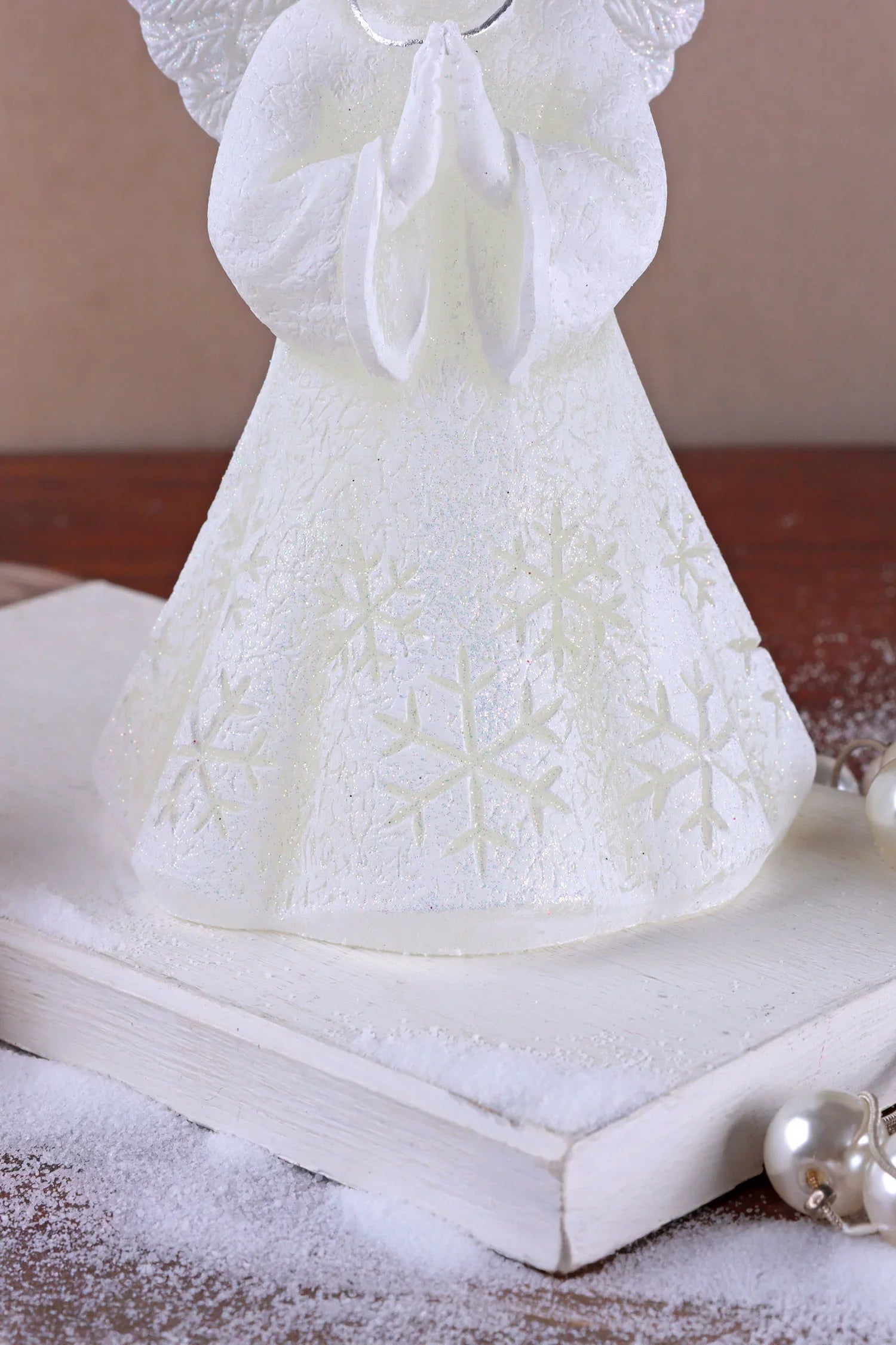 White Angel Art Candle Hand-Finished with Snowflake Dress Decorative Wax Figure Symbol of Blessings & Good Wishes
