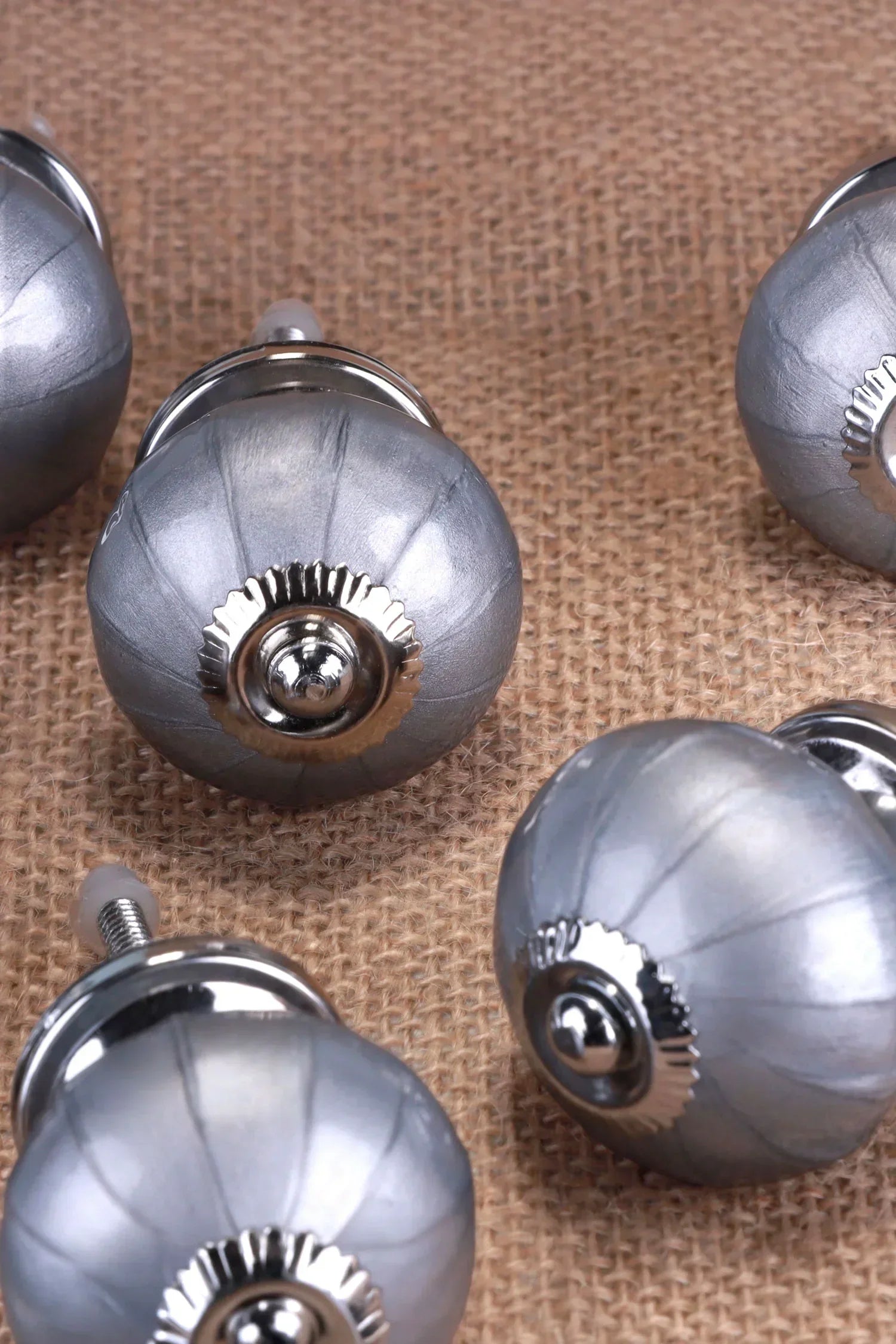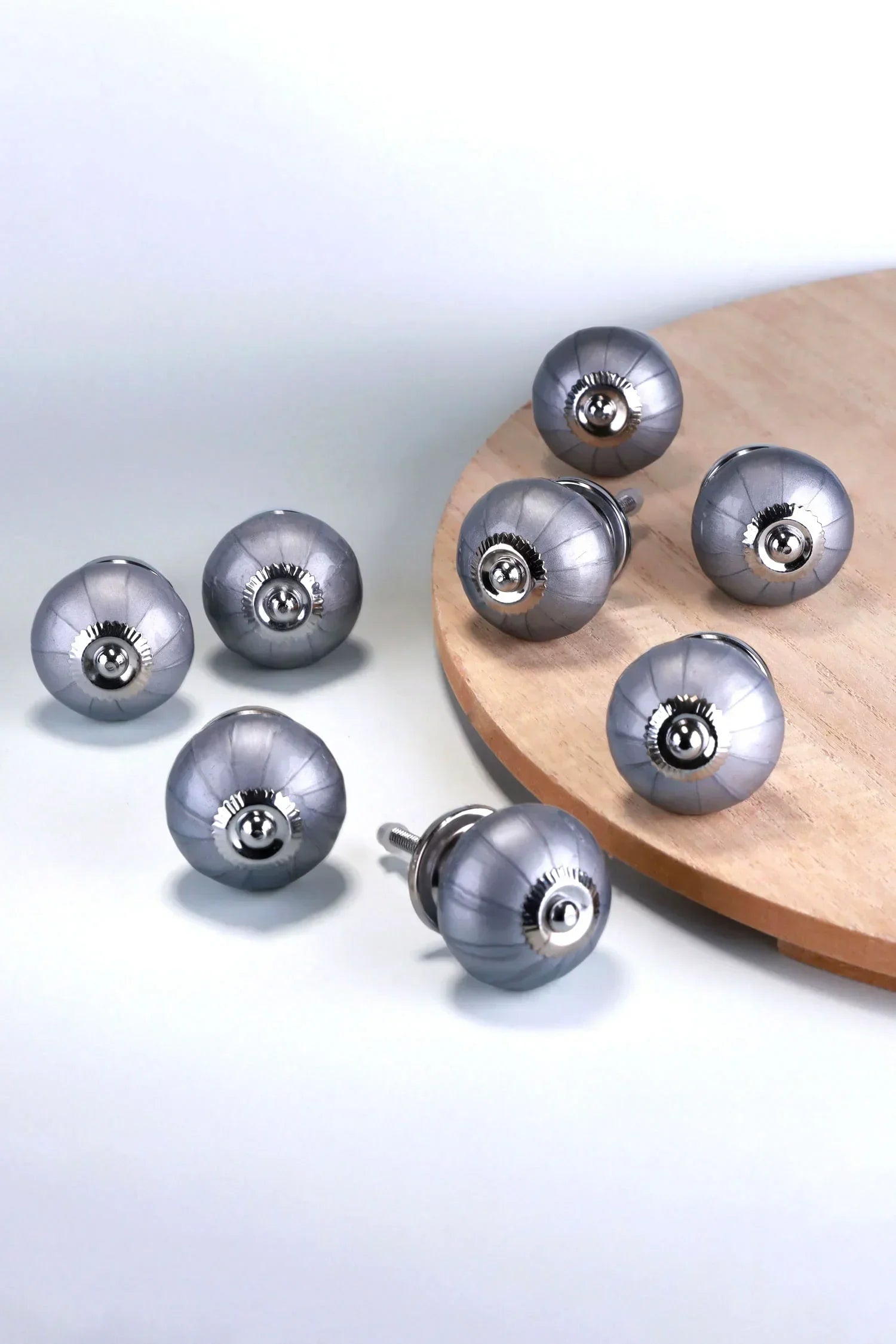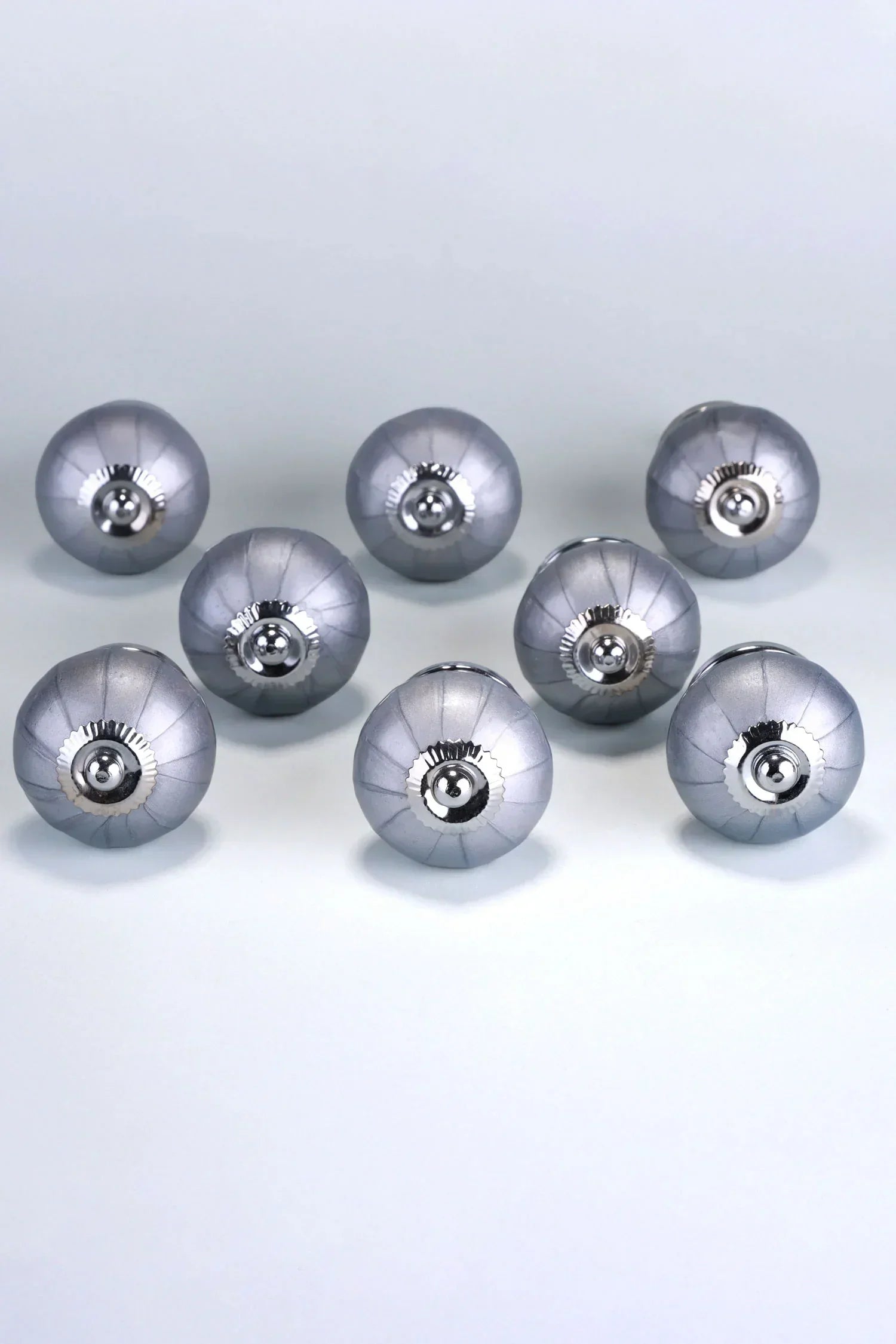 Set of 8 Hand-Painted Silver Bloom Grey Ceramic Door Knobs