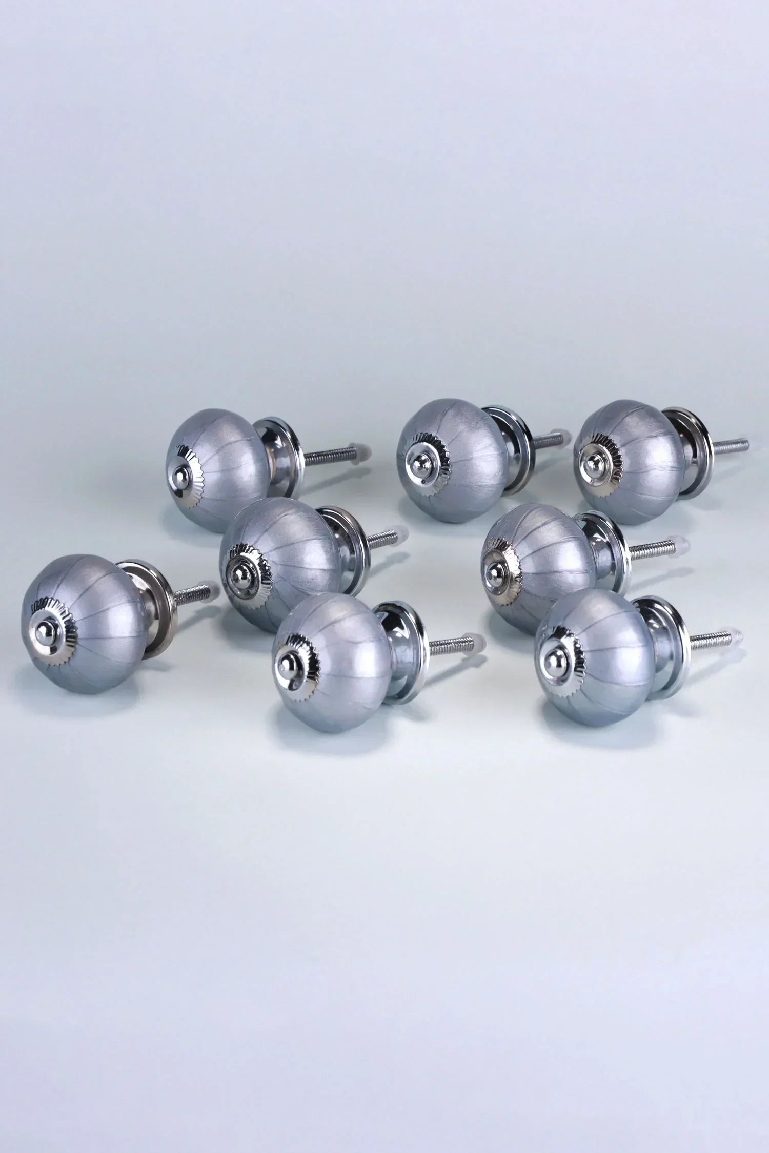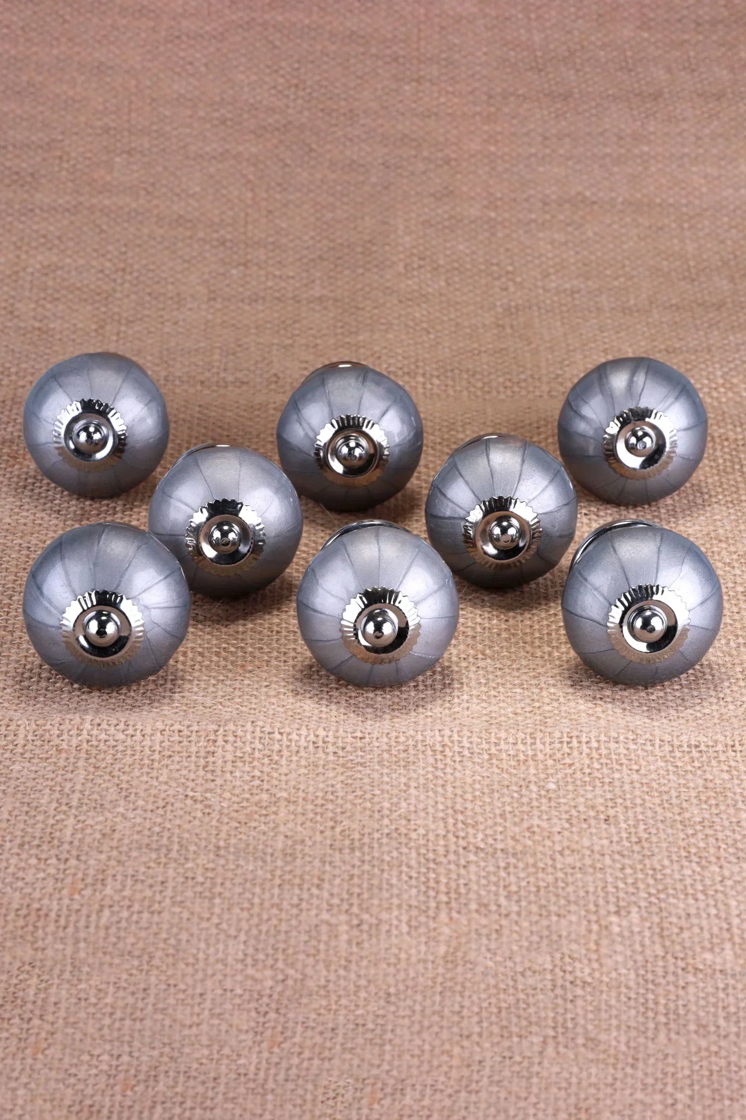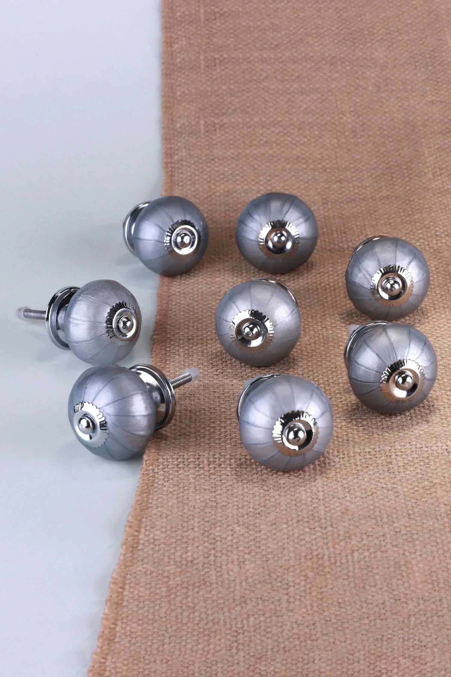 Set of 8 Hand-Painted Silver Bloom Grey Ceramic Door Knobs
