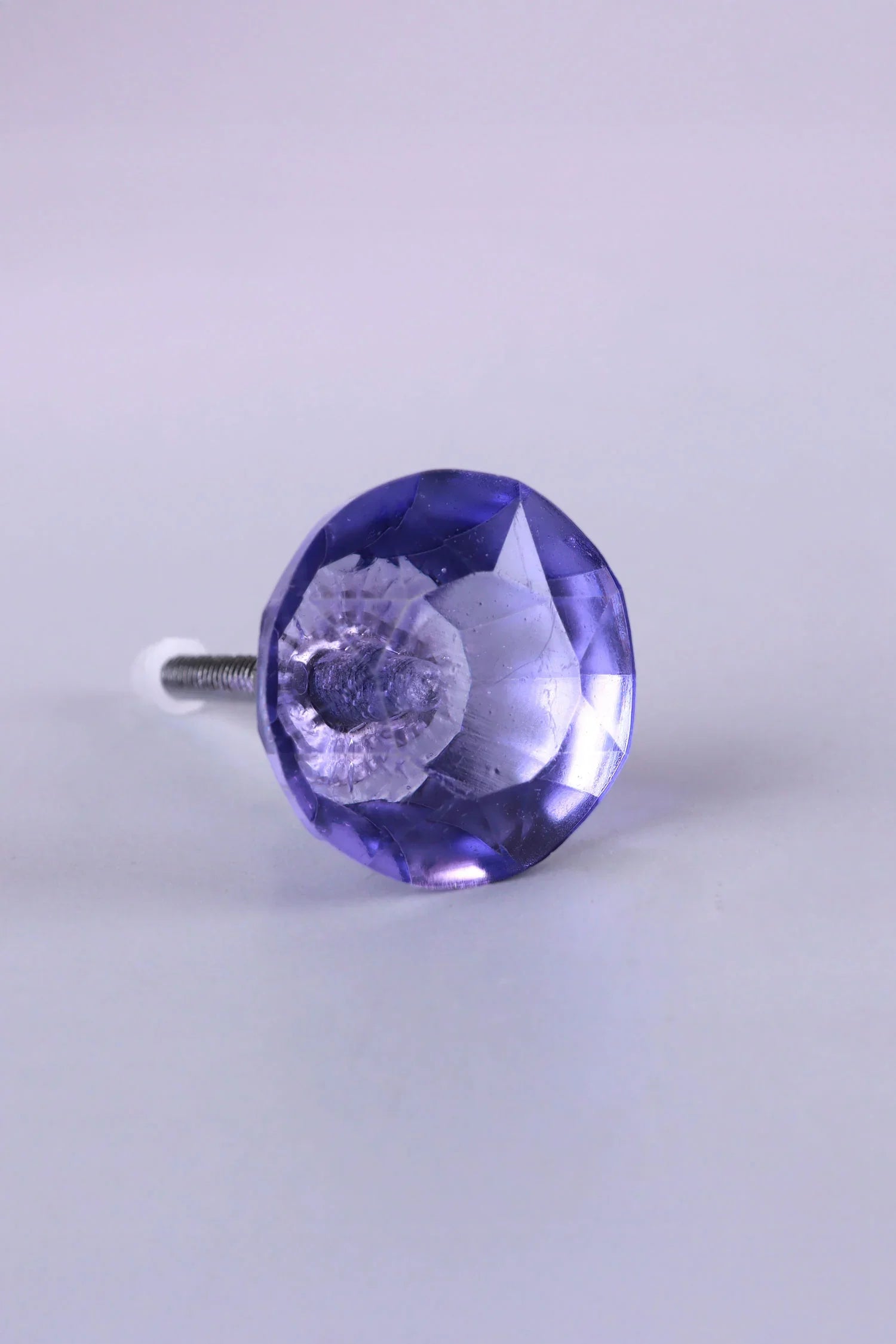 The Crystal Purple Handcrafted Coloured Faceted Glass Cupboard Door Knob Handle (32mm) is made from richly tinted glass shaped into a clear, multi-faceted form. The surface catches the light in a soft, jewel-like way, giving the knob a gentle purple glow that works beautifully across cupboards and drawers. Its rounded profile feels comfortable to hold, and the faceted detailing adds a pretty decorative note. The colour sits between soft lavender and deeper violet tones, creating a calm, elegant accent that blends easily with both light and darker furniture finishes. The glass head sits securely once installed, offering a neat, polished look on any cabinet front. At 32mm, the size is well-suited for bedside tables, wardrobes, kitchen cabinetry, and decorative restorations where a touch of colour is welcome. This piece brings together crafted glasswork and a clear, defined shape, offering a small yet distinctive detail for everyday furniture.