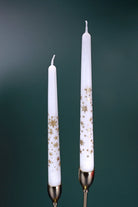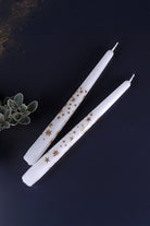 Set of 2 Hand-Finished White Gold Starlit Dinner Candles Gold Glitter Stars Taper Candles Set