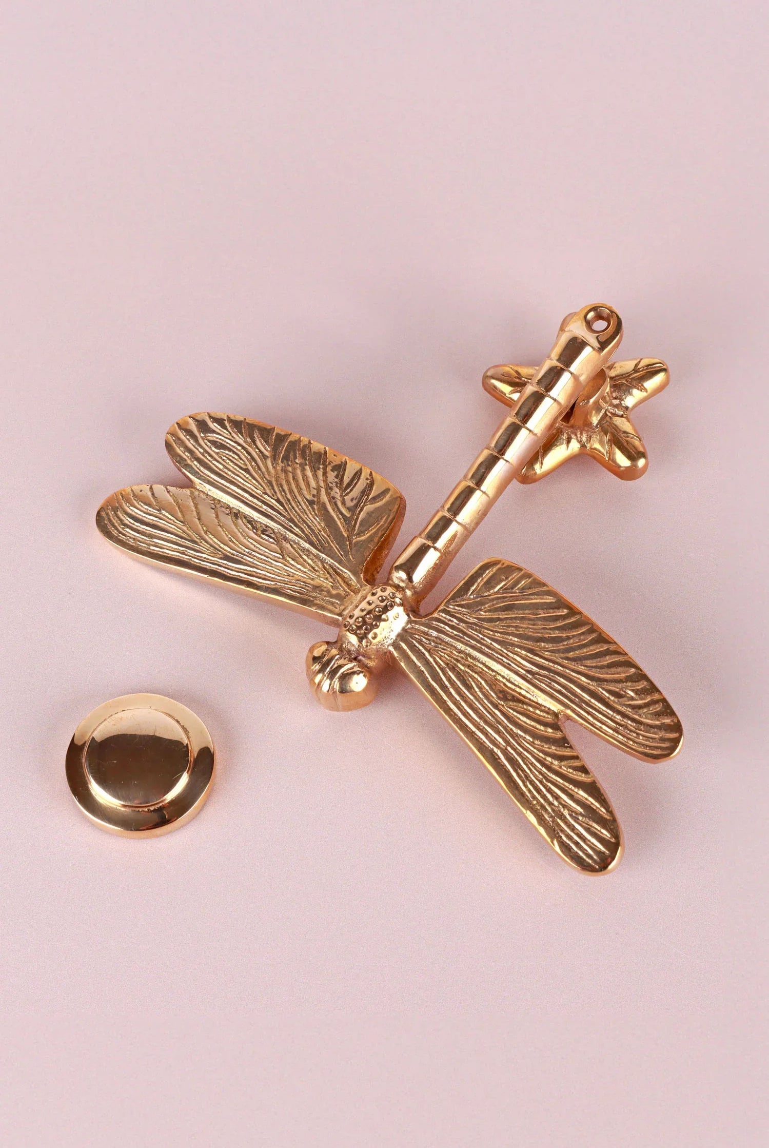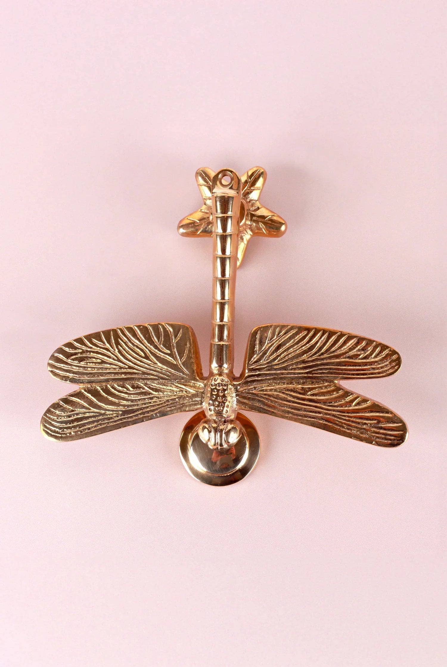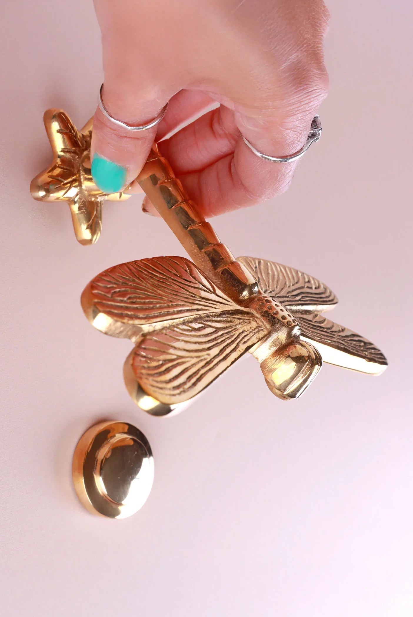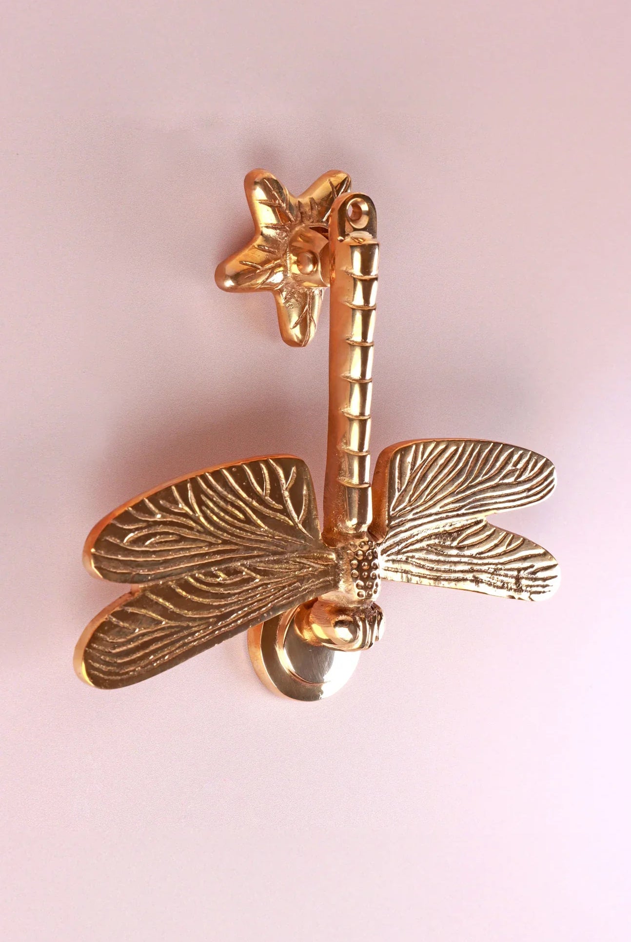 Golden Dragonfly Polished Brass Door Knocker Elegant Front Door Hardware Fitting