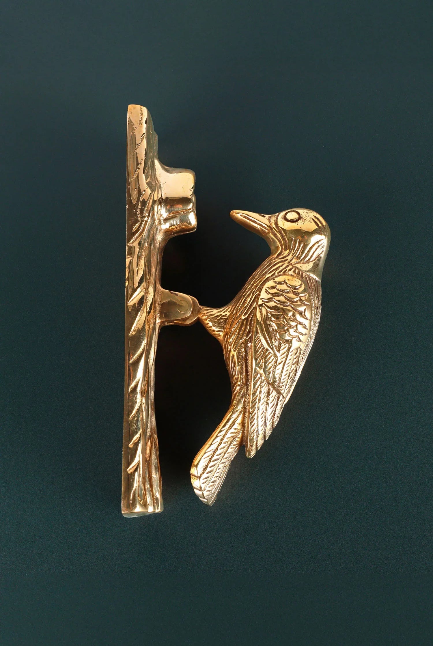 Golden Woodpecker Polished Brass Door Knocker Elegant Front Door Hardware Fitting