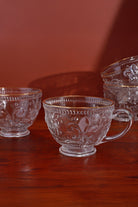 Inspired by the historic Fleur-de-Lis symbol, these beautifully embossed glass cups capture the refined art of classic European design, making them perfect for enjoying coffee, tea, or any special beverage in style. The Fleur-de-Lis, meaning "flower of the lily" in French, has been a symbol of royalty, grace, and heritage for centuries. Historically associated with the French monarchy and European aristocracy, this iconic motif has adorned everything from architecture and textiles to fine glassware, symbolizing purity, elegance, and tradition. These mugs pay tribute to that legacy, blending classic craftsmanship with modern functionality. Each glass mug features intricate embossed detailing, creating a beautifully textured surface that adds both elegance and a vintage feel. The delicate gold rim adds a luxurious design, making these mugs perfect for special occasions or everyday use. Great way to enjoy a morning coffee, afternoon tea, or a cosy hot chocolate, these mugs add charm to the experience with their artful craftsmanship and refined aesthetics. These stunning embossed mugs are ideal for anyone who appreciates classic European design and make a perfect gift for weddings, birthdays, anniversaries, housewarmings, or tea lovers. Due to the gold rim detailing, hand washing is recommended to maintain their shine and durability.