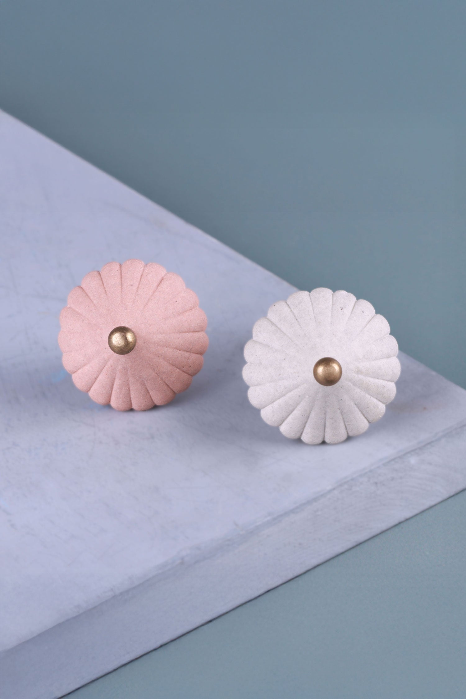 Refined and sculptural, the Belle Ombrelle ceramic door knob is a celebration of artistic design and quiet luxury. Shaped by hand with a soft, scalloped silhouette that echoes a blooming flower or an antique parasol, each piece is finished in either creamy ivory or delicate pastel pink, and anchored with a beautifully polished solid brass centre. The contrast between the silky ceramic glaze and the gleaming brass accent creates a look that feels both classic and contemporary. Perfect for designer-led interiors, boutique cabinetry, or bespoke joinery projects, these knobs are made for those who appreciate craftsmanship and thoughtful detail. The substantial brass finish isn’t just decorative — it signals quality, weight, and permanence. Whether installed on a curated wardrobe, custom chest of drawers, or high-end console, Belle Ombrelle brings an air of artistic precision to any space it graces.