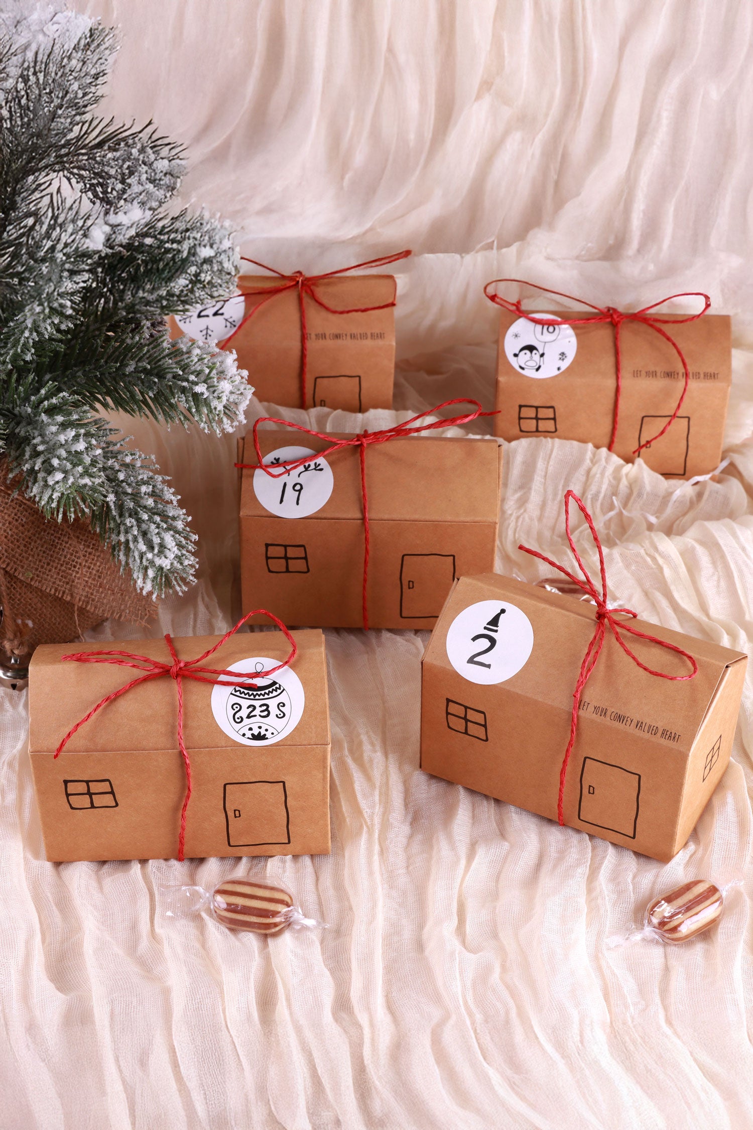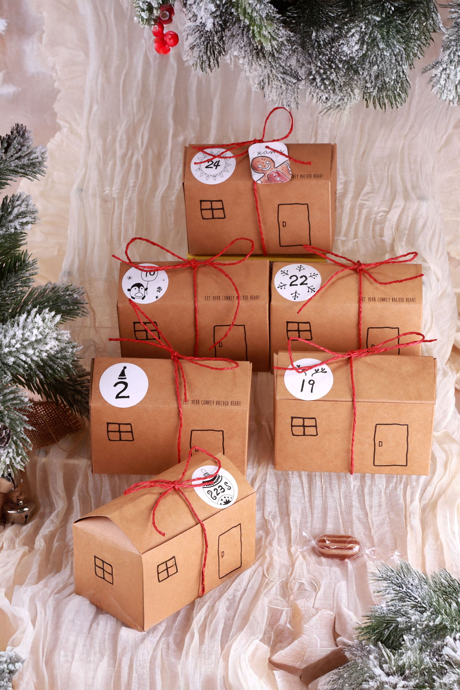 Includes: 24 houses, 24 red strings, 24 number stickers, 24 Christmas tags.