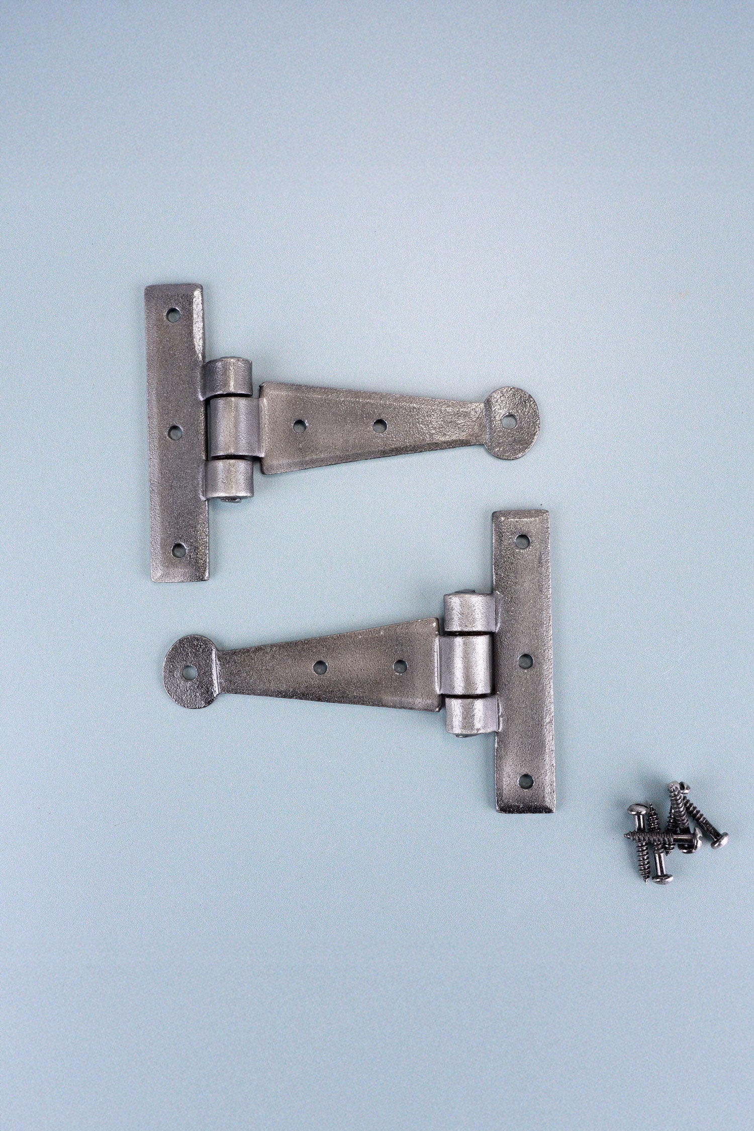 Pair of 4″ or 6″ Hand Forged Coinbase T Hinges Pewter Finish