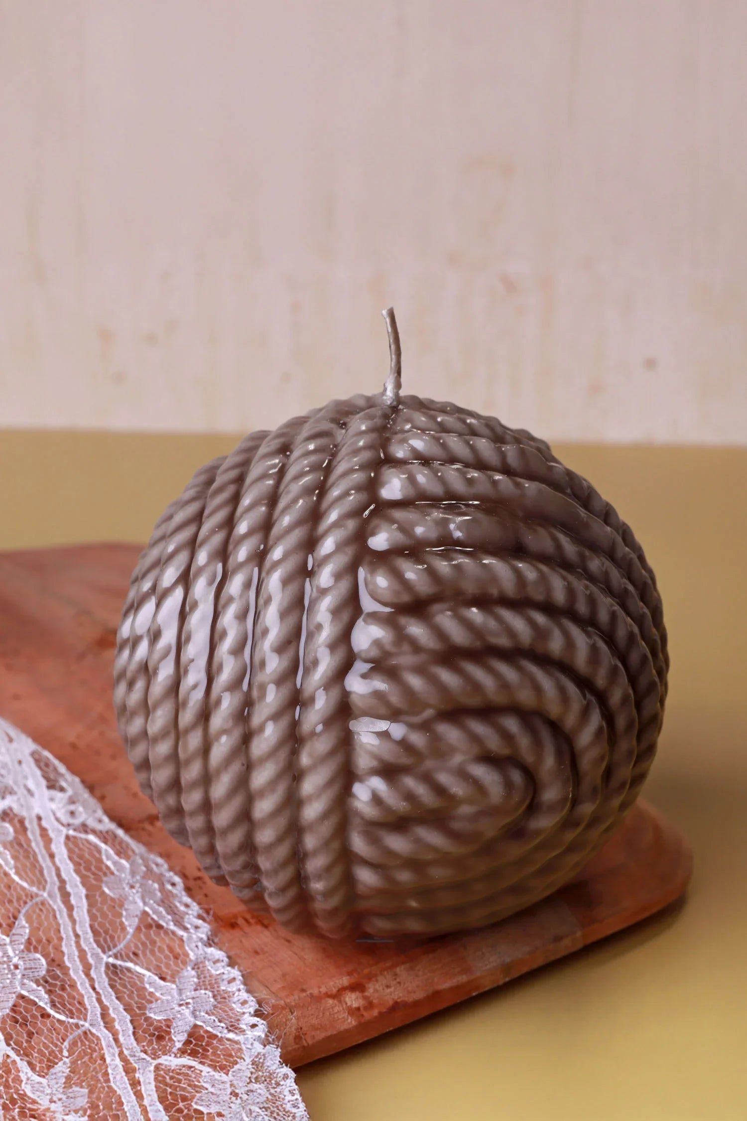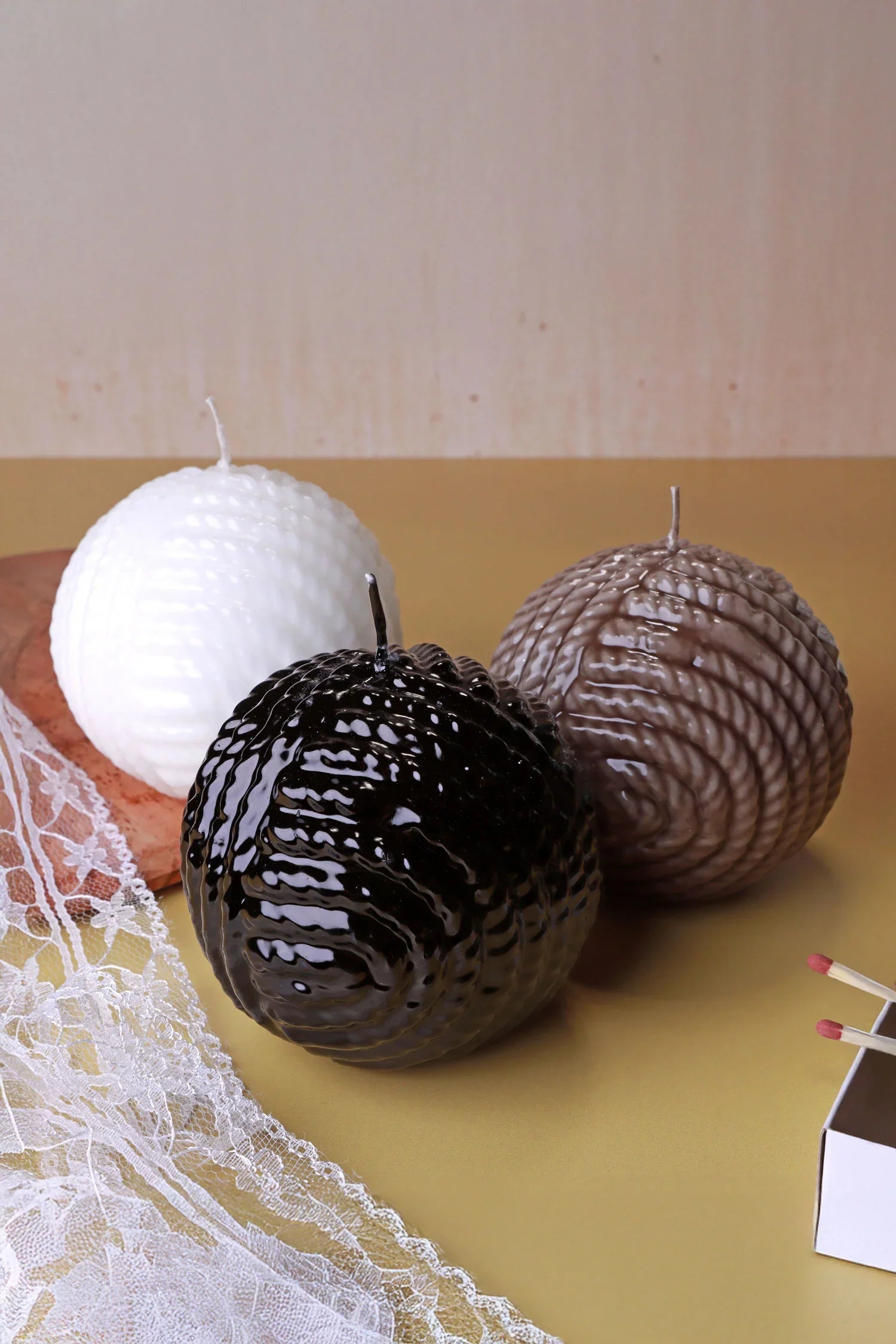 Grande Ripple Sphere Wool Candle Large Textured Wax Sculpture with Hand-Finished Detail