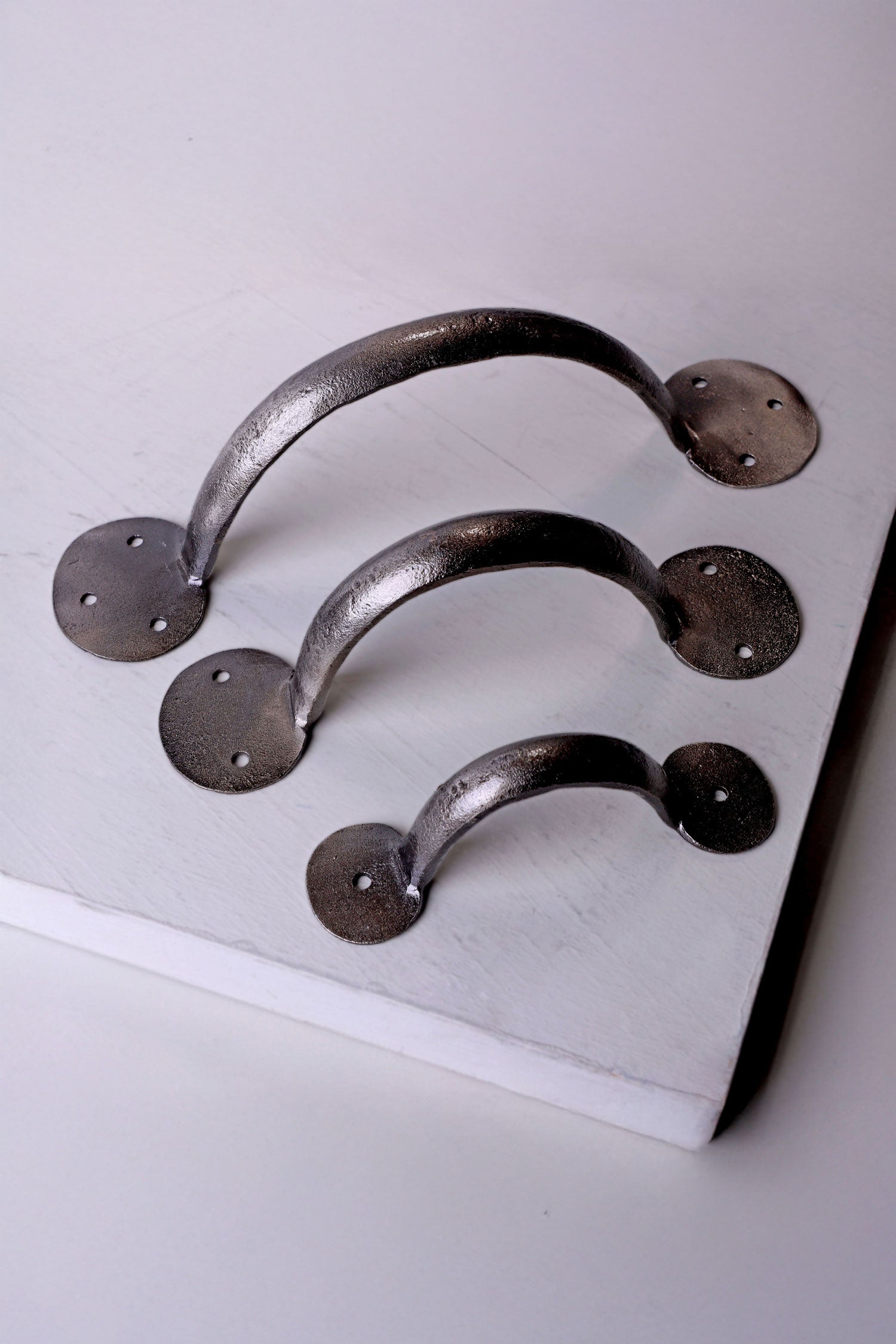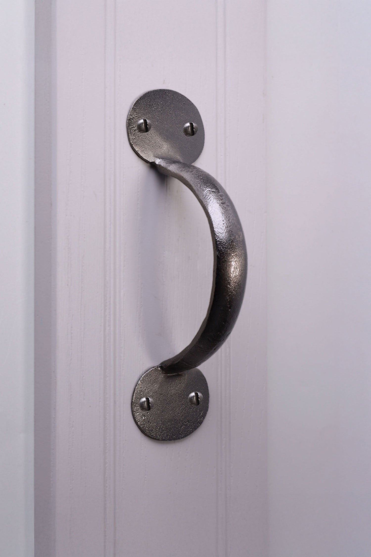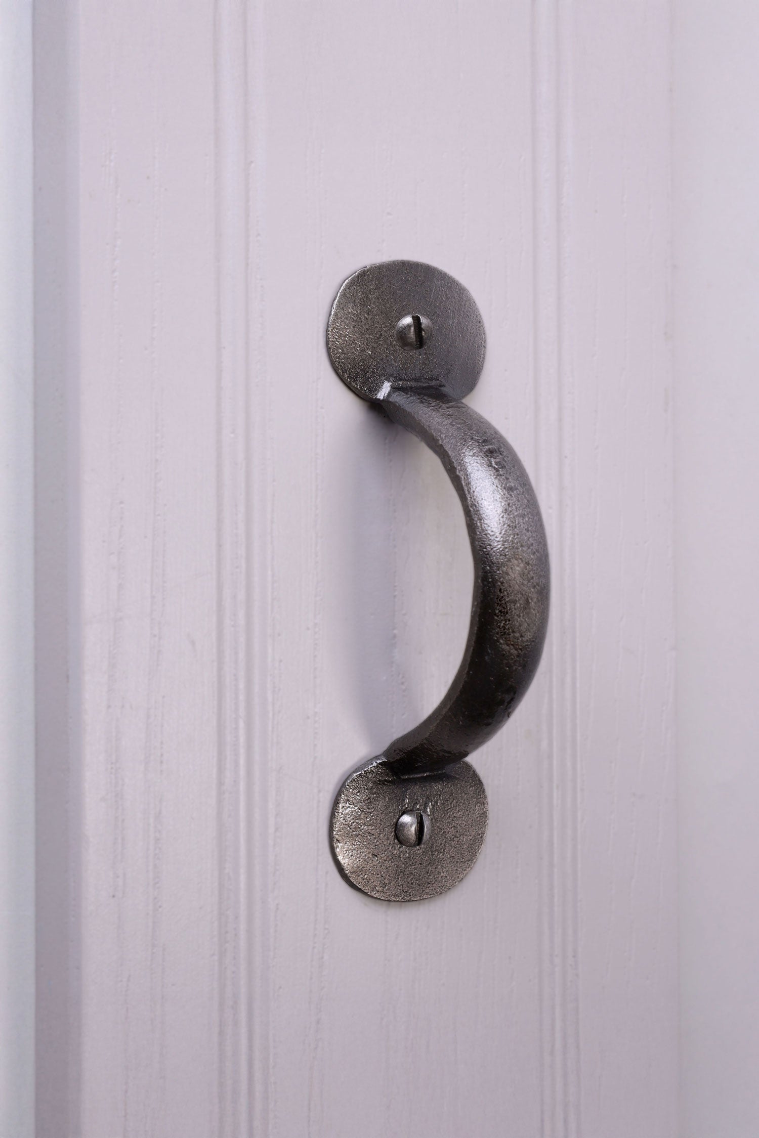 The Pewter finish takes its inspiration from traditional metalworking, where pieces were shaped by hand and finished with a muted, silvery tone that softened with use. To create this look today, the ironwork is first forged and shaped, then carefully brushed and treated to reveal a gentle silver-grey surface. The process leaves small variations and shading across the metal, which gives the finish its natural, slightly weathered appearance. Unlike bright plated finishes, Pewter is designed to look settled from the start — not shiny, but quietly metallic, as though it has already been part of the home for years. The final tone is achieved by layering and working the surface until it reaches a balanced, soft sheen that feels grounded and familiar. This makes it particularly suited to wooden doors and neutral interiors, where materials with more subtle character tend to sit comfortably. Pewter is also appreciated for being straightforward to live with; the finish doesn’t demand special care and simply needs an occasional wipe to keep dust away. Because the tone is built into the surface rather than applied as a heavy coating.