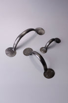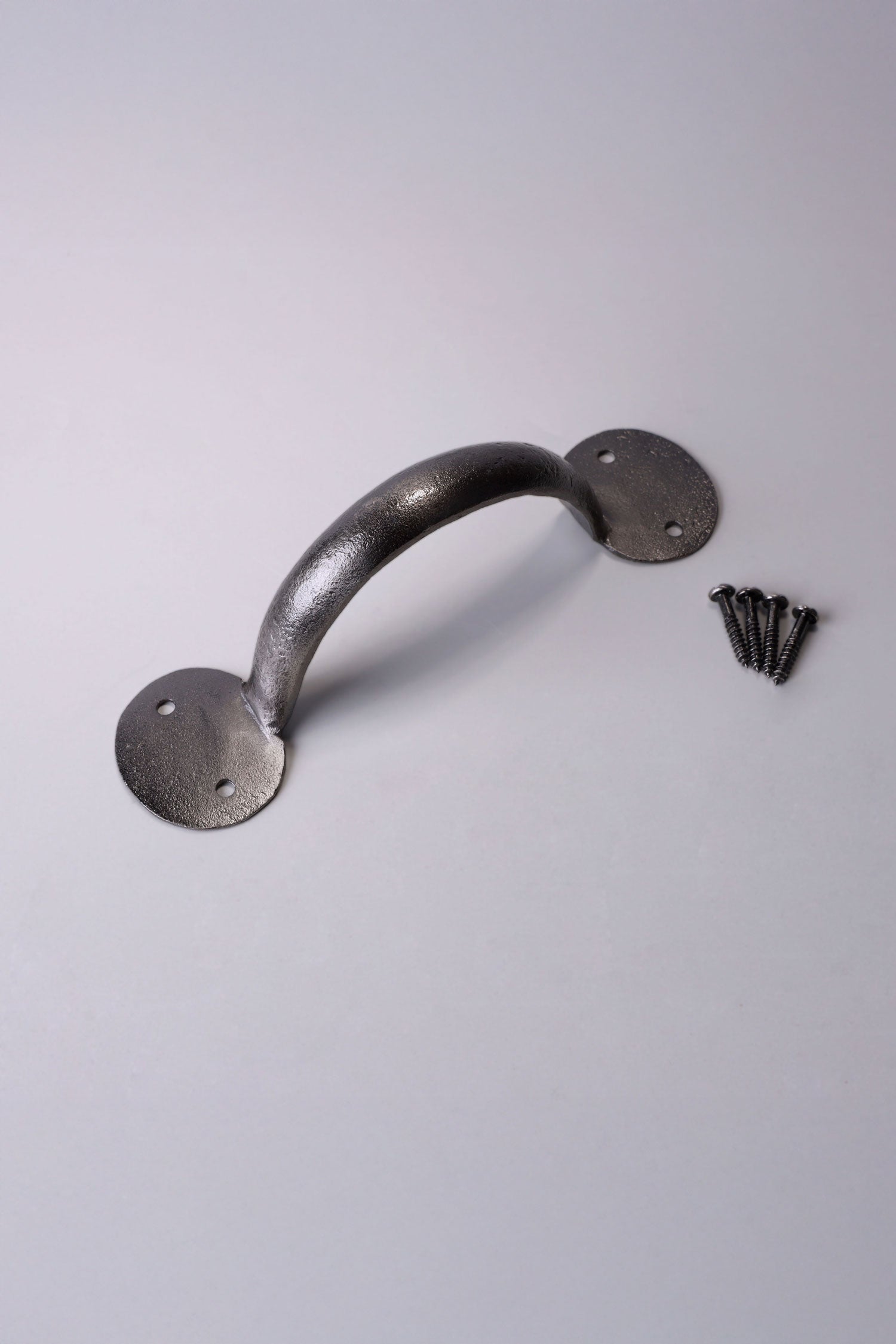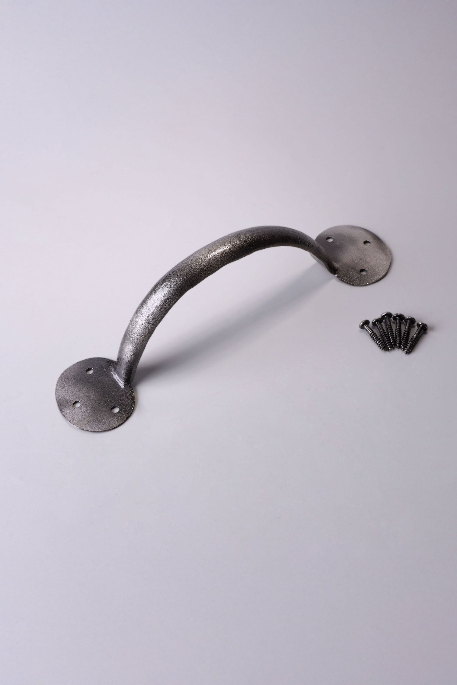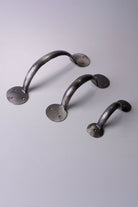 This hand-forged coinbase pull handle is manufactured from solid pewter using traditional metalworking techniques. The handle is shaped by hand to create a robust and practical fitting suitable for a wide range of interior and exterior applications. The handle incorporates round coinbase fixing plates at each end. These bases are formed to create a raised edge around the fixing points, providing strength and a distinctive traditional appearance. The coinbase detail is a characteristic feature of classic door furniture and is commonly used across period and heritage joinery. Pewter is naturally corrosion-resistant and well suited to both indoor and outdoor environments. The finish offers a soft, muted metallic tone that works comfortably in traditional, rustic and heritage-style settings, while remaining understated enough for more neutral interiors. The pull handle features a simple curved profile designed to provide a comfortable and practical grip. The 4 inch size is typically used on smaller drawers and compact cabinetry. The 6 inch size is suitable for standard drawers, cupboard doors and smaller internal room doors. The 8 inch size is recommended for entry doors, standard room doors and barn doors, as well as larger drawers and furniture doors where a longer handle provides improved hand clearance. Each handle is supplied with matching fixing screws and is suitable for use on drawers, cupboard doors, furniture doors and doors where a traditional pewter pull handle is required.