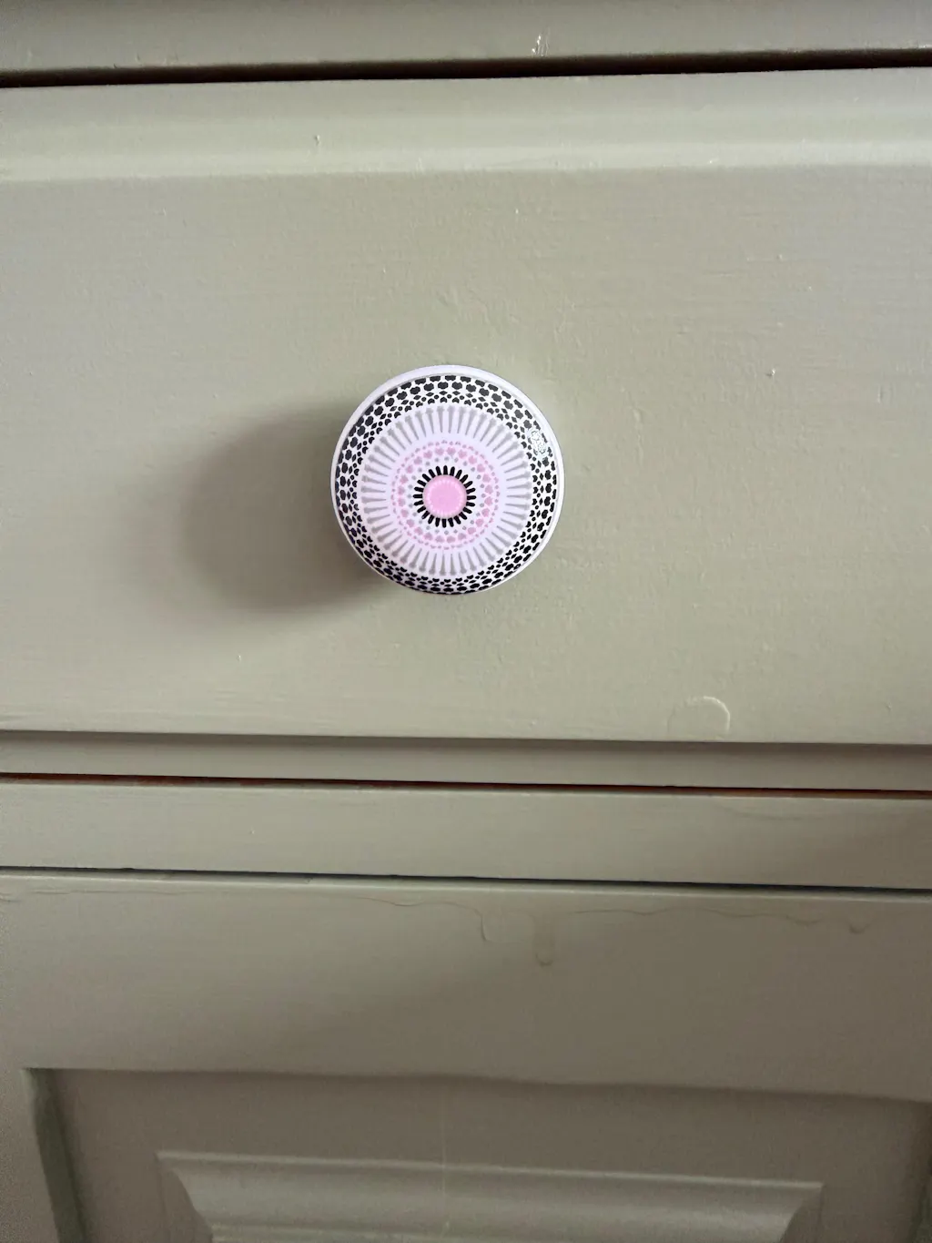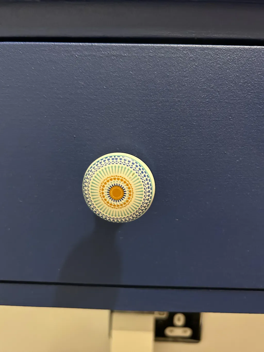 Positive Energy is crafted entirely by hand; the form carries the marks of artisan skill, shaped in smooth ceramic, painted with delicate precision, and glazed for a tactile, lasting finish. The floral symmetry, combined with the comforting round shape, gives the knob a sense of rhythm and purpose. Designed to be felt as much as seen, it brings warmth and quiet energy to familiar objects. This ceramic knob holds the kind of quiet symbolism once found in ancient tribal crafts — forms created not just for beauty, but to invite warmth, optimism, and balance into everyday life. Said to trace back to times before written history, its origins are unknowable, yet its presence feels familiar. There’s a gentle stillness to it — an unspoken belief that such objects carry more than decoration, quietly shaping the atmosphere around them. Well suited to cabinets, drawers, wardrobes, and cupboard doors, the design integrates beautifully into interiors where detail matters. It fits naturally within bedrooms, kitchens, studies, and spaces where a touch of artistry elevates the everyday. Supplied with a matching metal backplate and standard bolt fitting, it balances charm with reliable function — handcrafted decoration, made to be part of daily life.