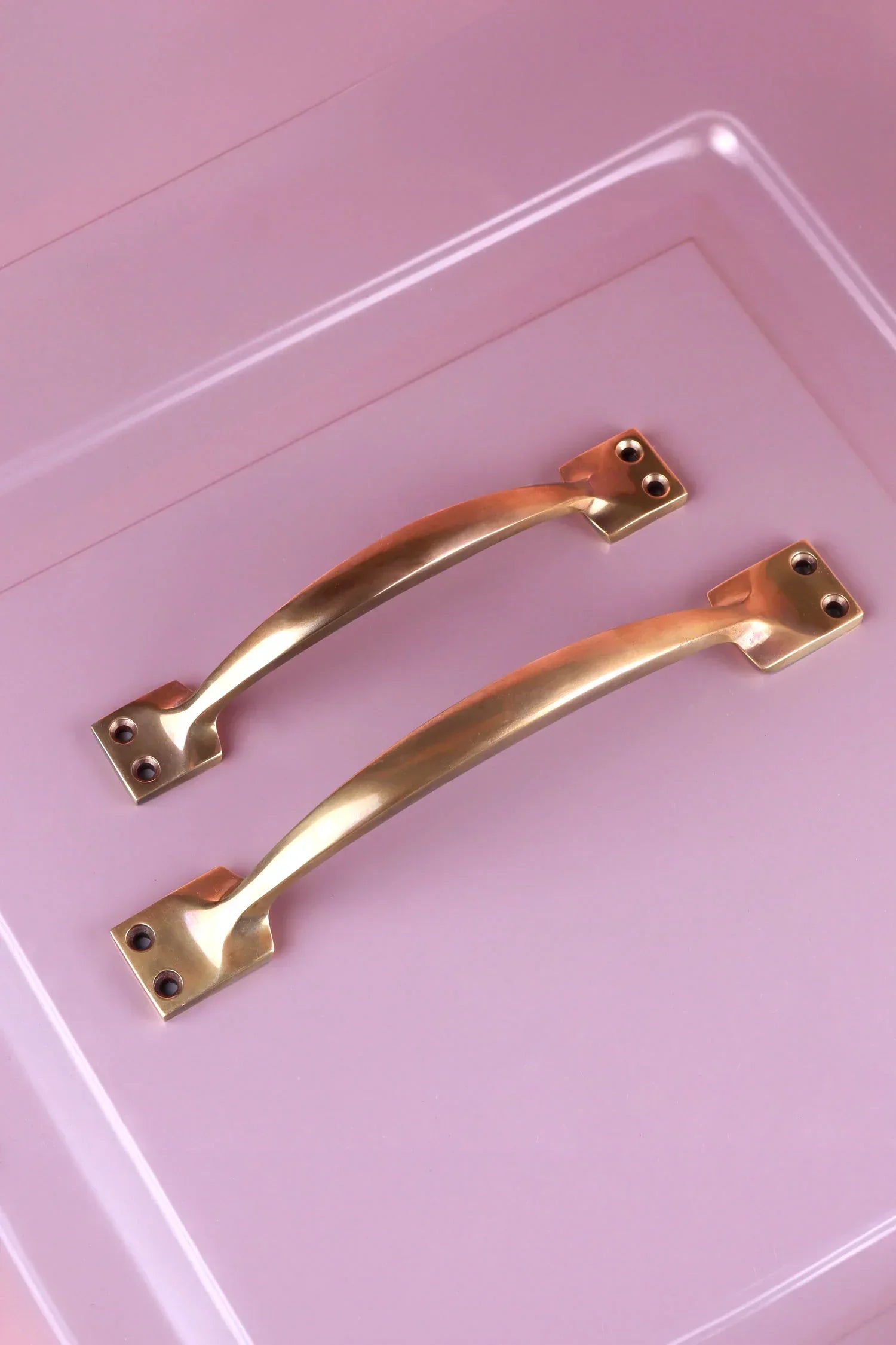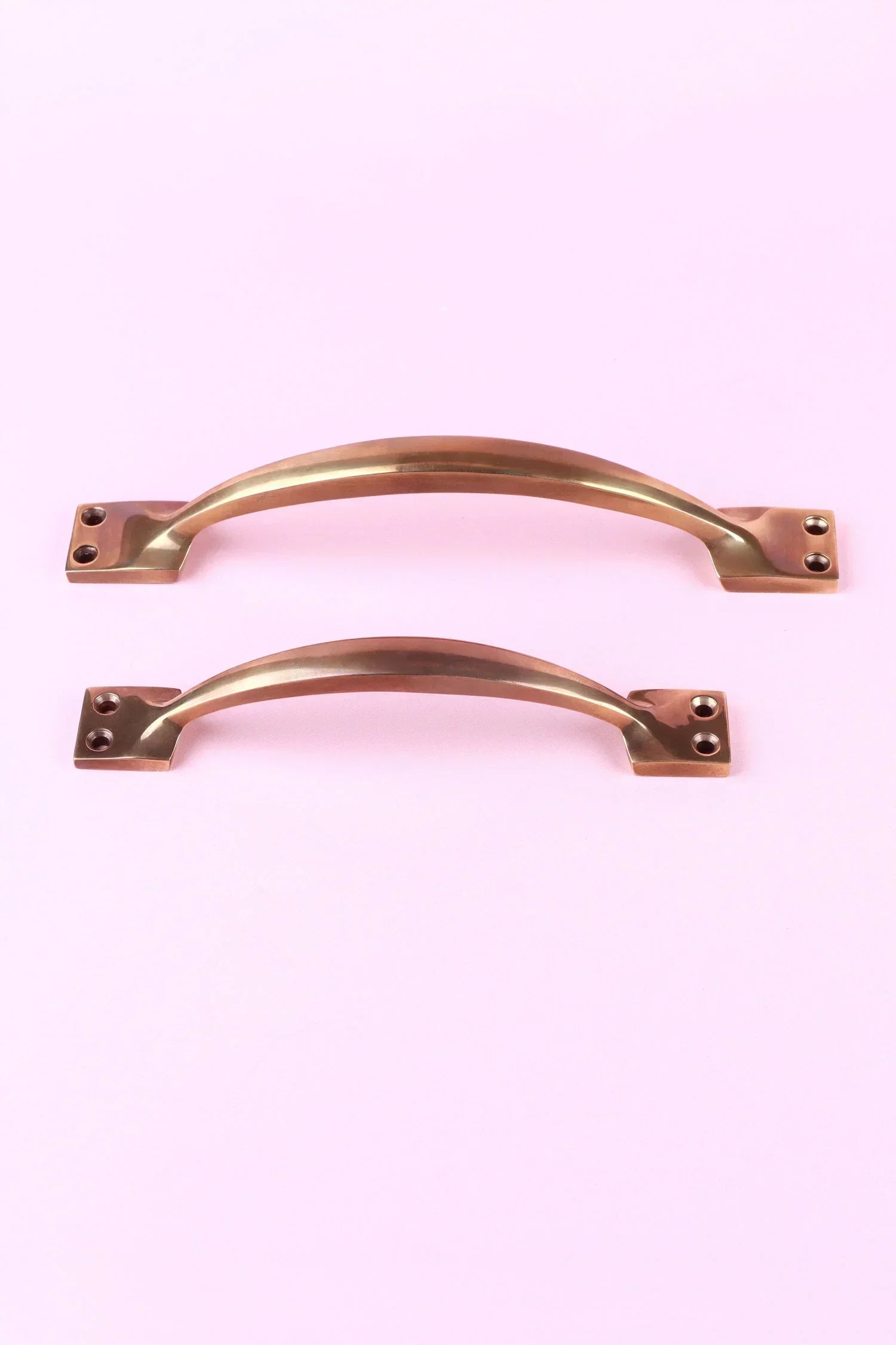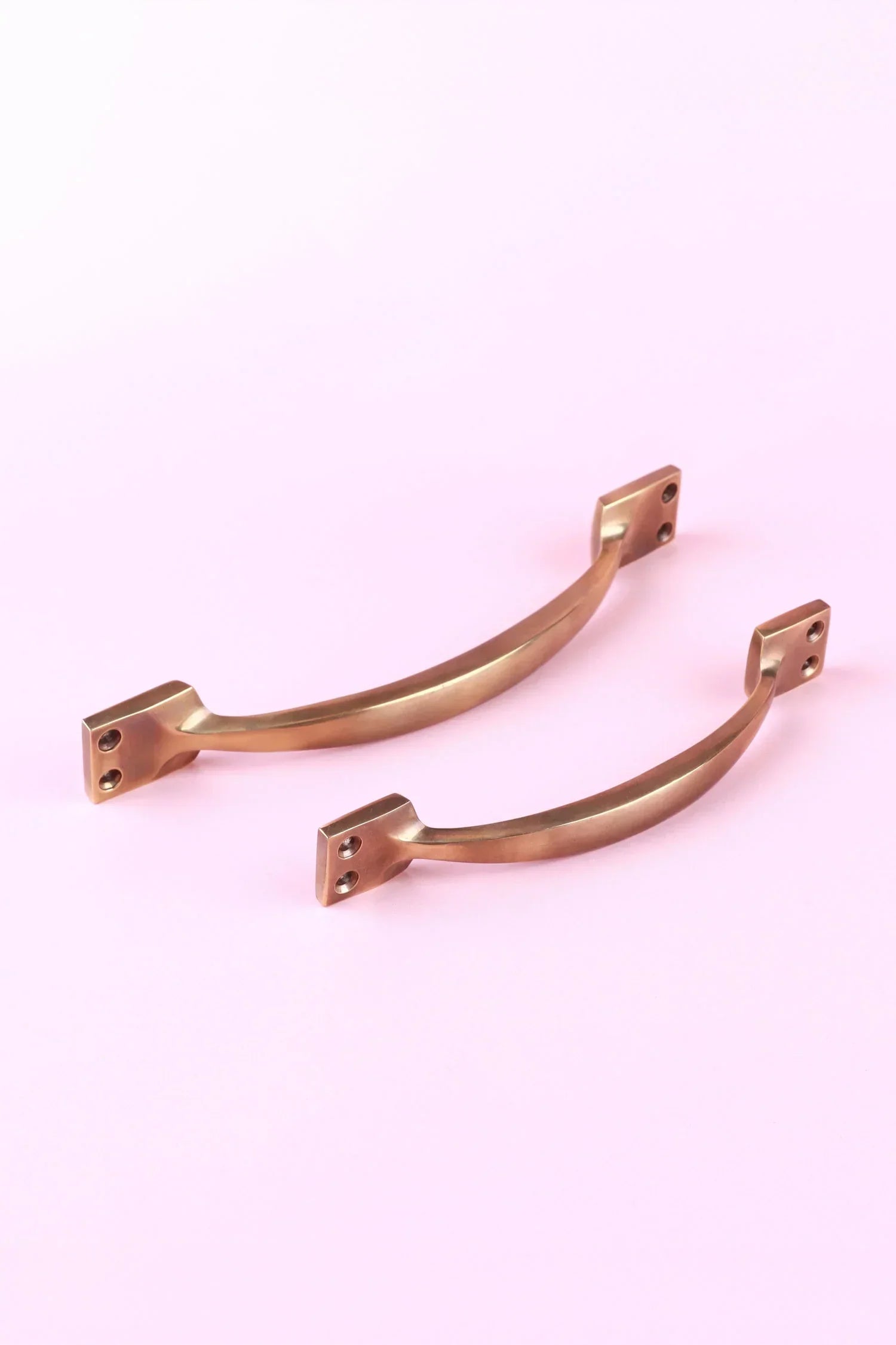 Formed from solid brass and finished by hand, the Oxford handle carries the natural depth and variation of aged metal. The surface is left with a softened tone, allowing the brass to develop character over time rather than appear newly polished. The curved profile is shaped with precision, creating a balanced form that sits comfortably in use while maintaining a strong architectural line. The weight of the brass is evident in the hand, giving a substance and permanence. The finish reflects a more traditional approach to brass hardware, where the material is allowed to speak through its texture and tone. Each piece is individually finished, resulting in adding identity. Specifically designed for door applications. Supplied with matching fixing screws for installation.