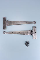 Pair of 9″ or 12″ Hand Forged Coinbase T Hinges Pewter Finish