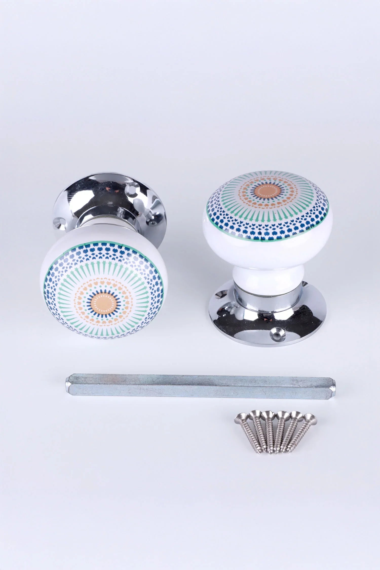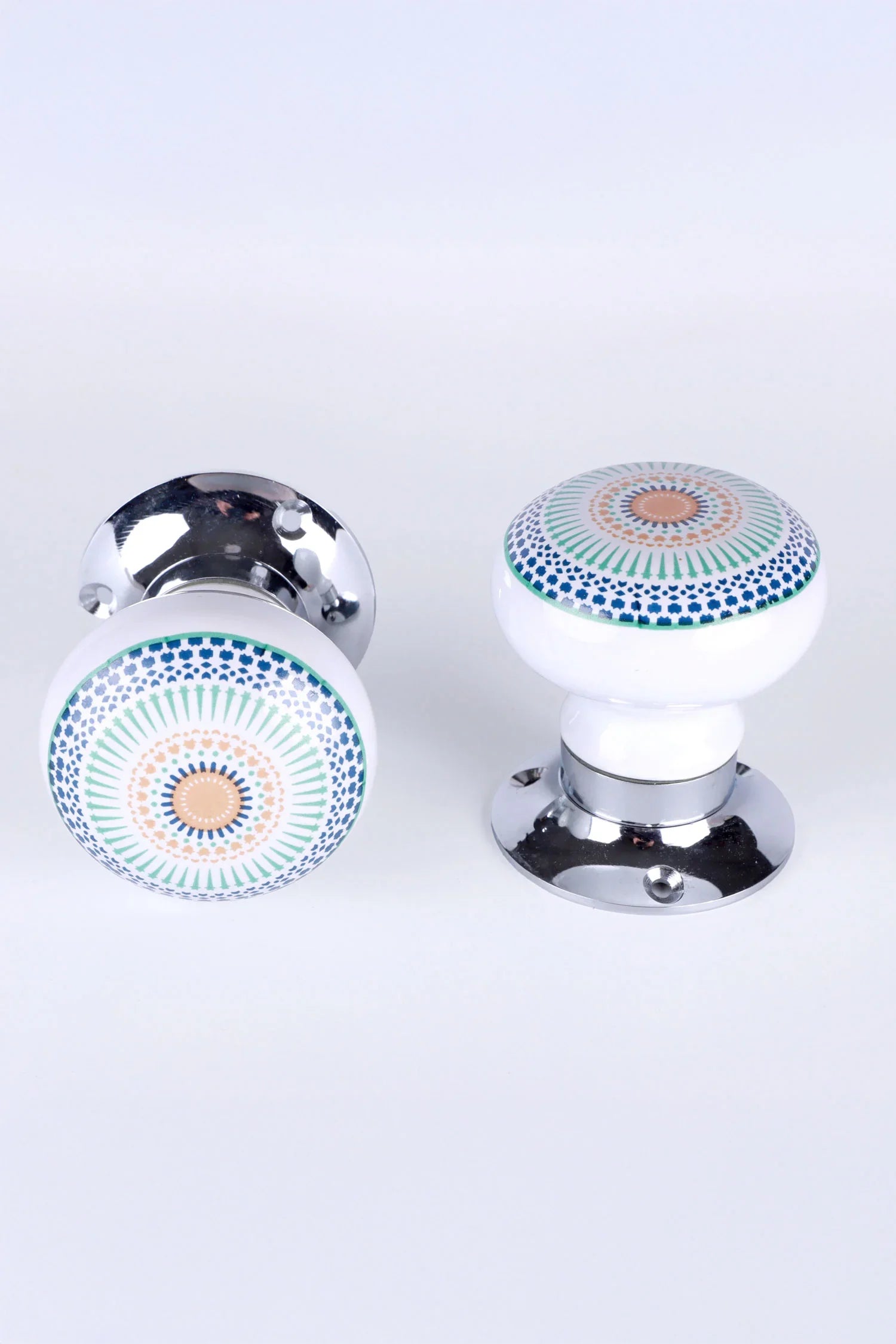 Set of Positive Energy Radiance Handcrafted Internal Mortice Turning Door Handles – Ceramic Knobs with Chrome Base