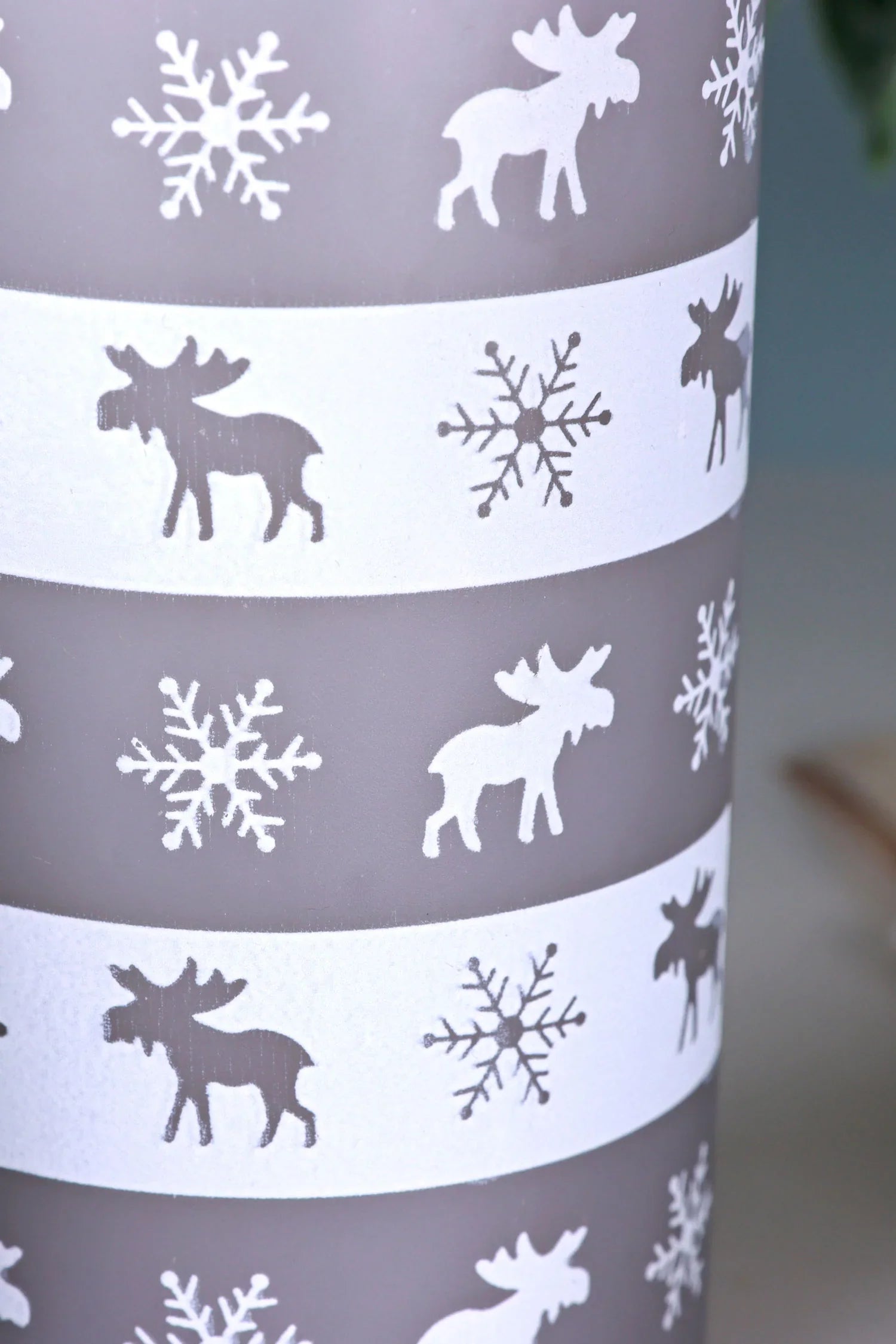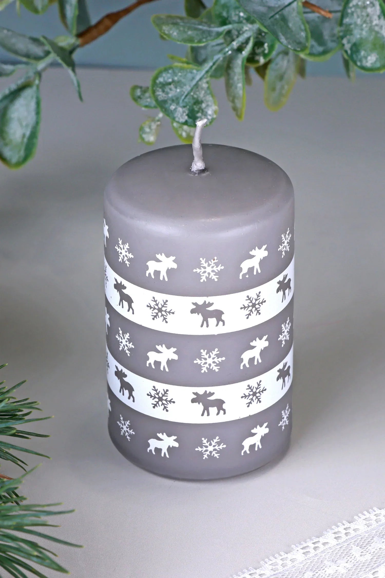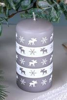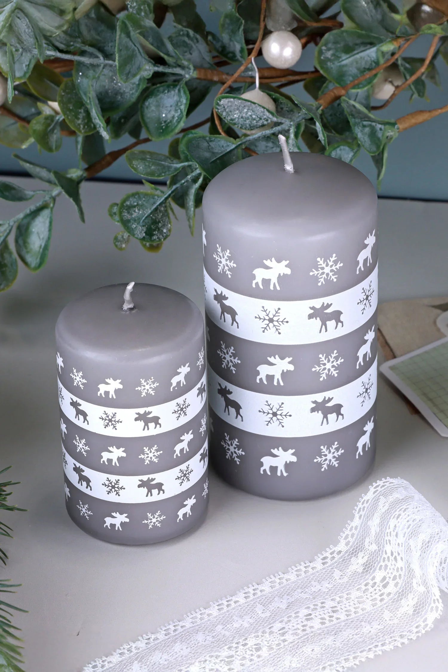 Nordhavn Grey Reindeer Pillar Candle Nordic Winter Lodge Décor in Small or Large Size