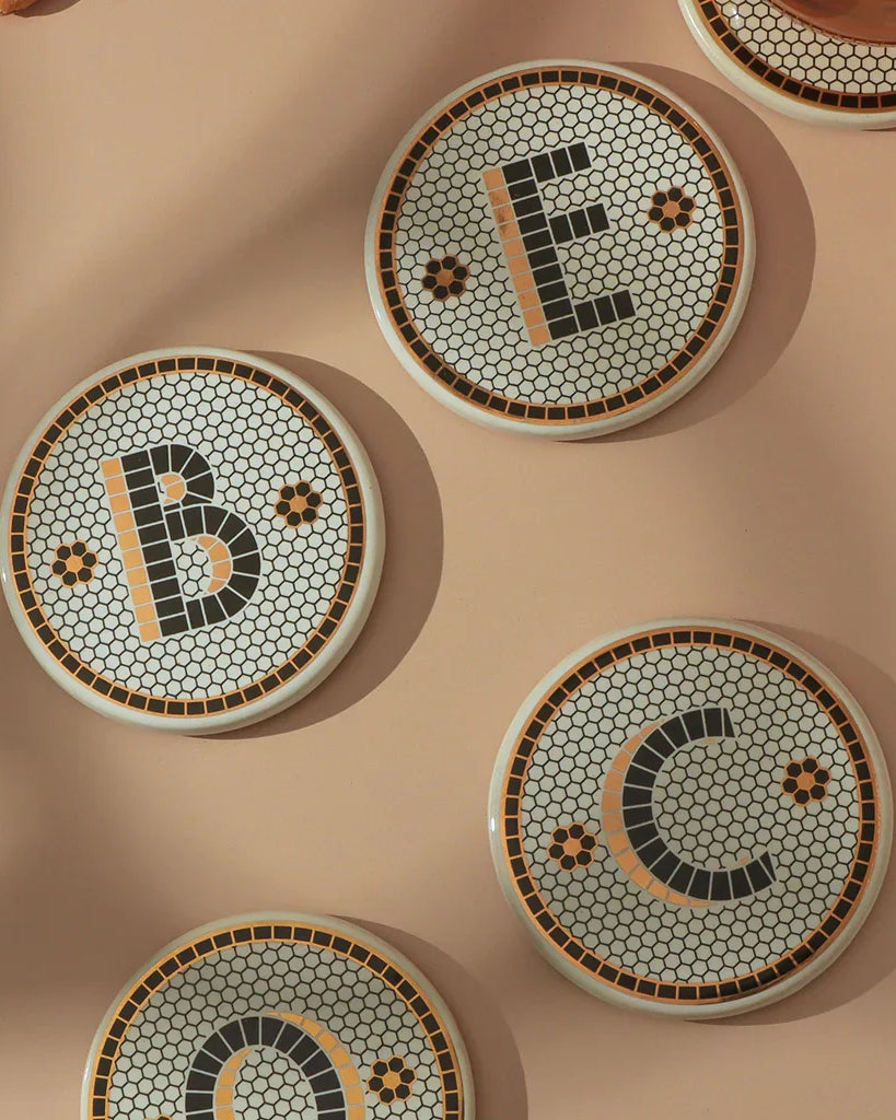 Hand-finished mosaic coasters and table accents — designed to elevate everyday moments with quiet elegance.